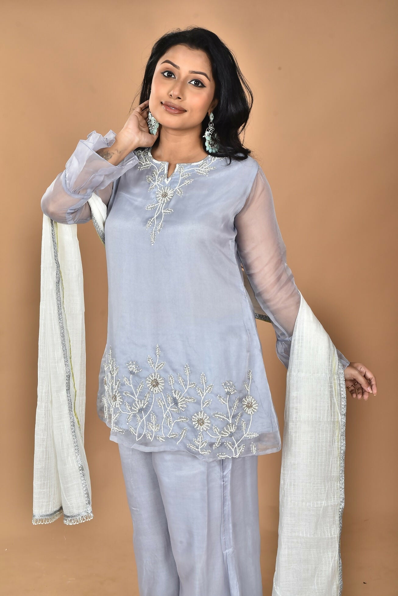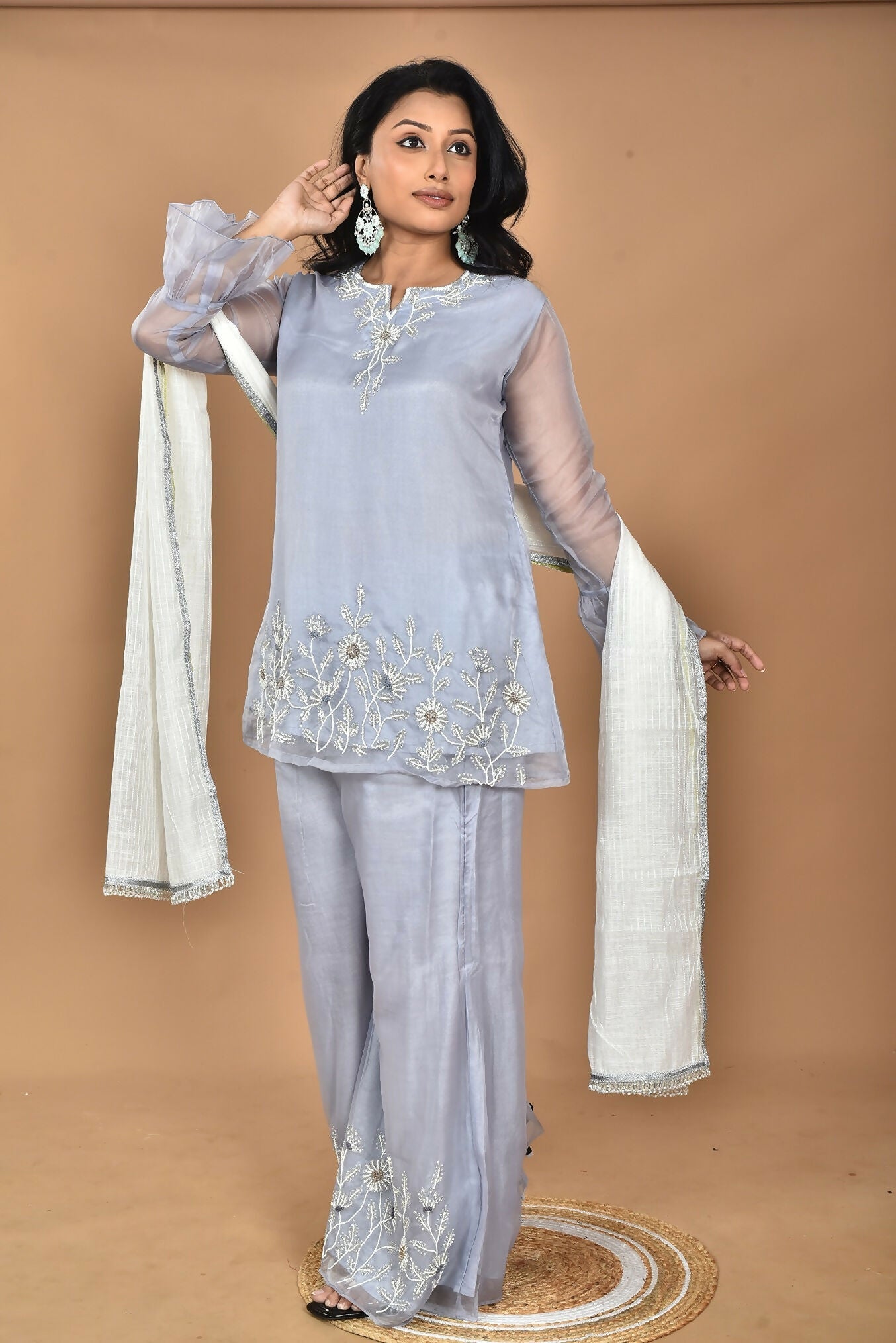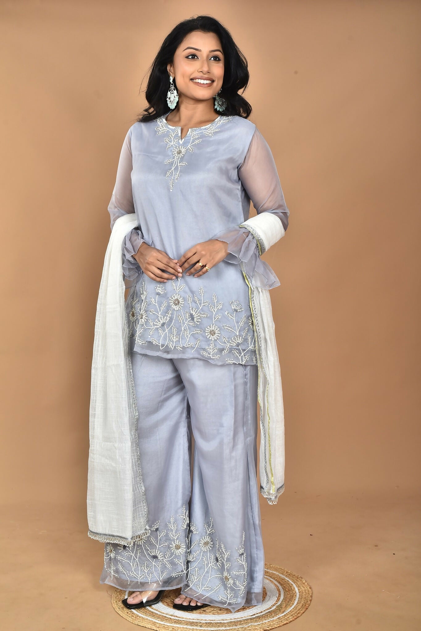 Morchari Women And Hand Embroidery Palazzo Set-Grey
