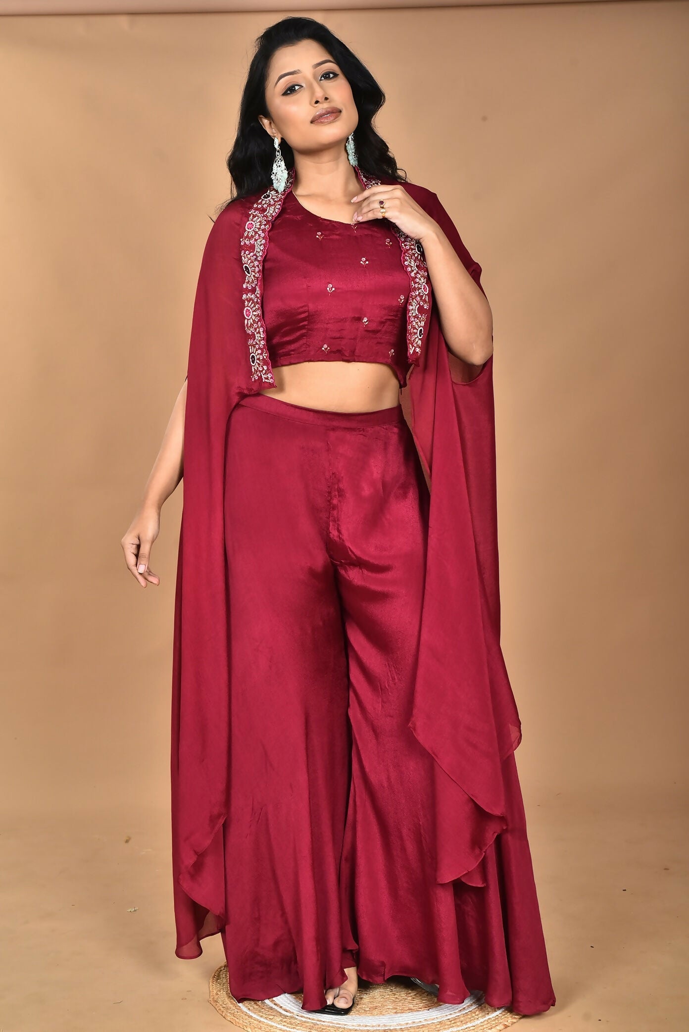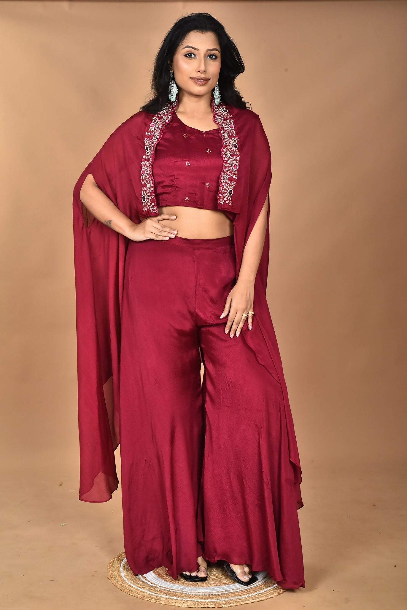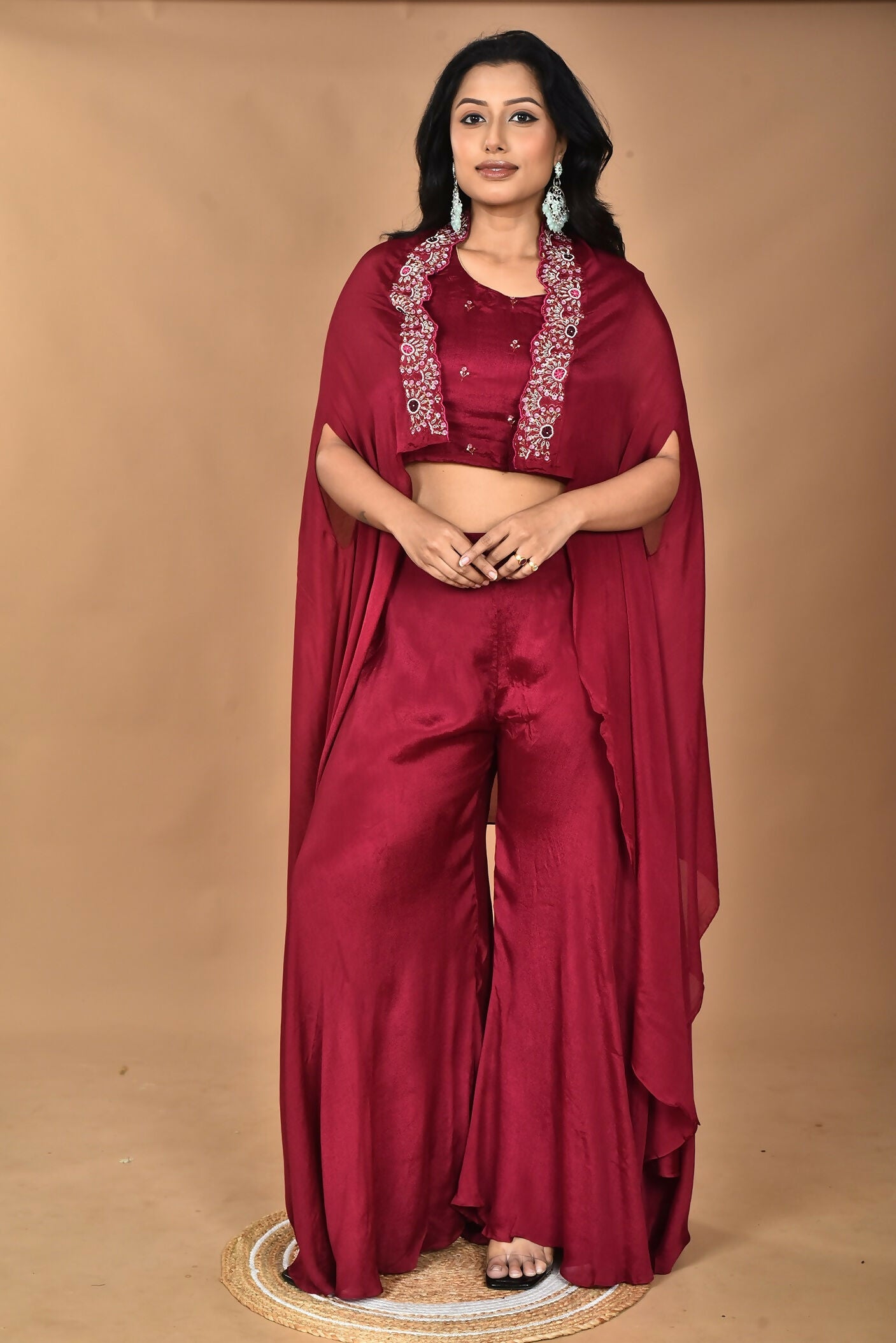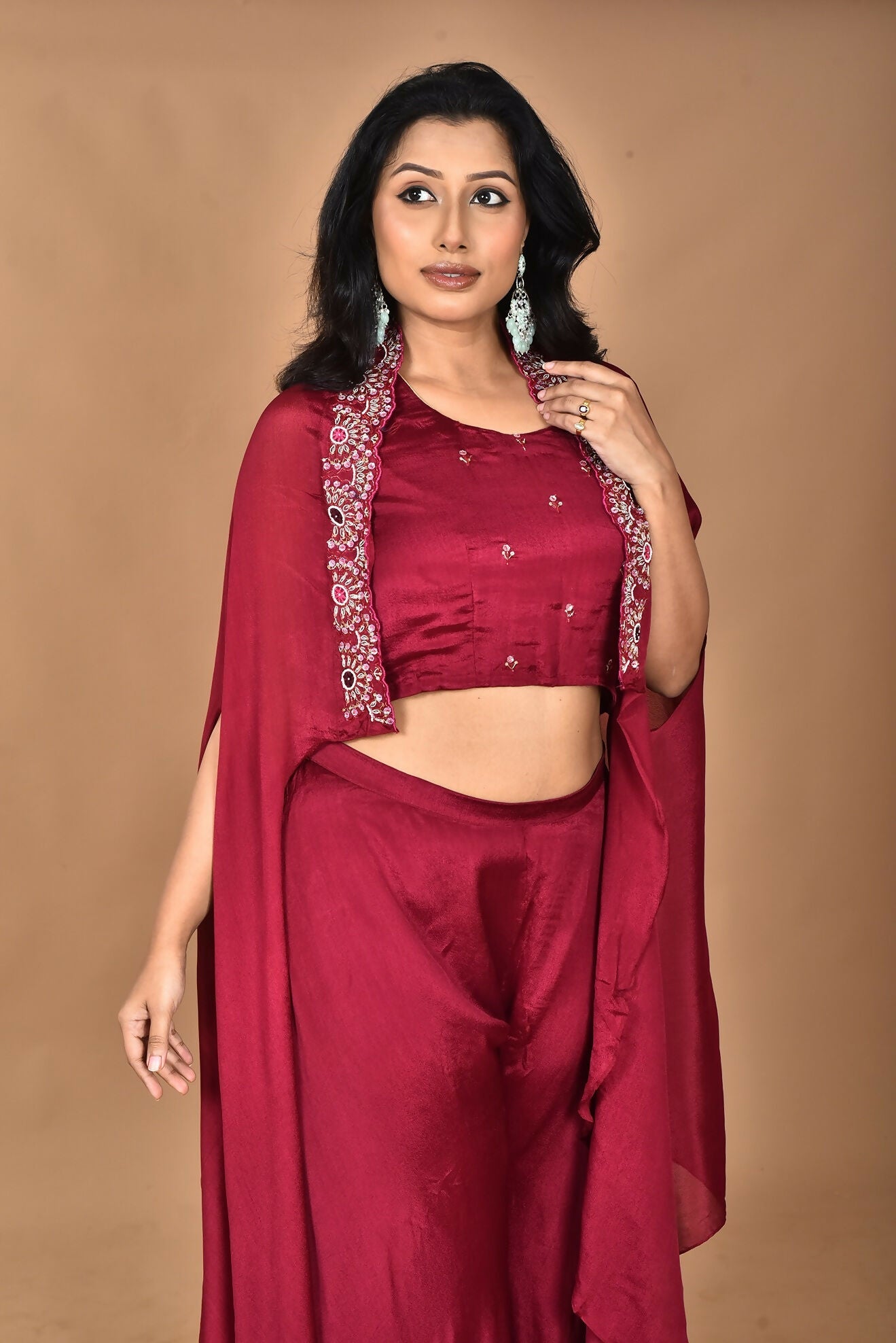 Morchari Women And Hand Embroidery Palazzo Set-Magenta