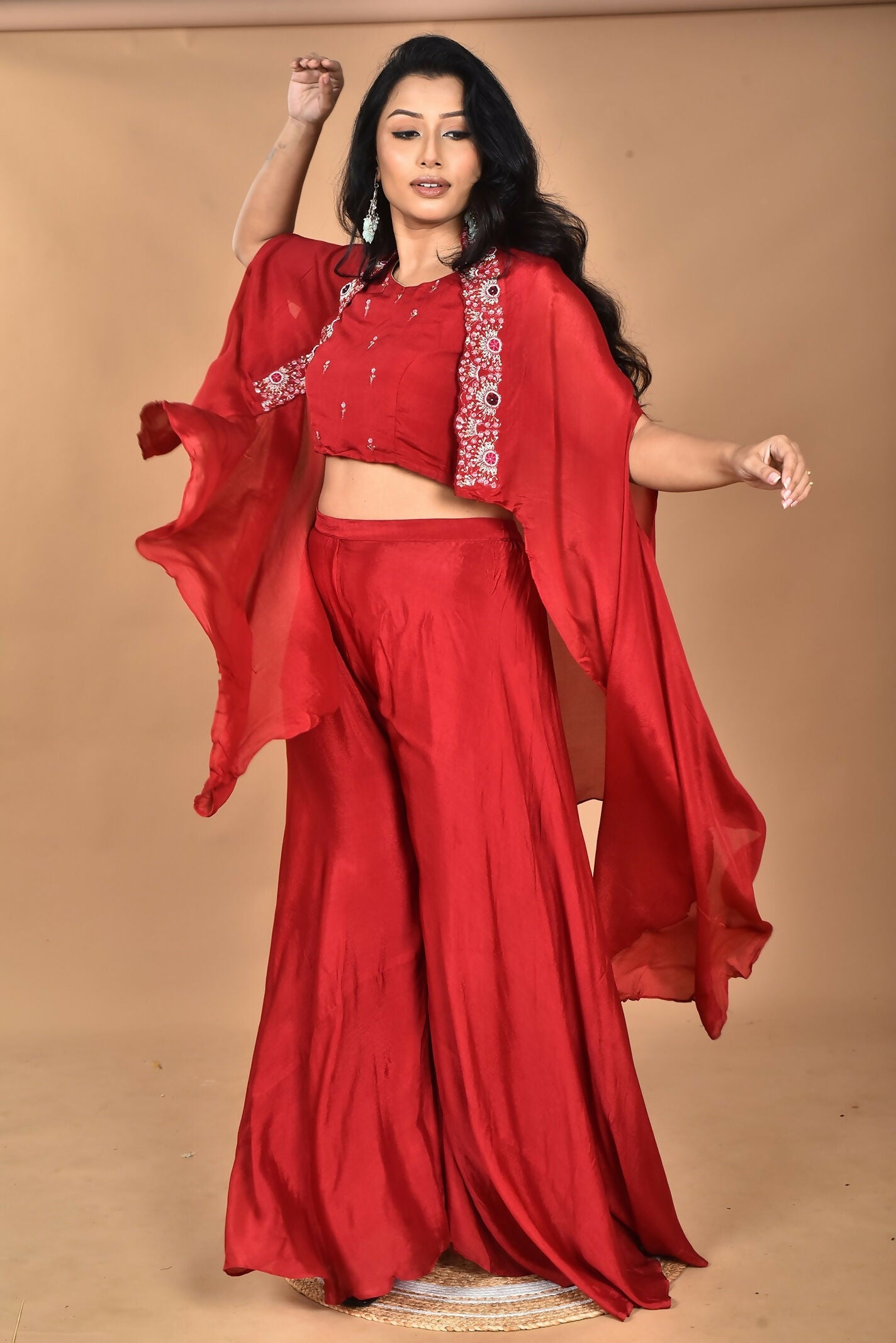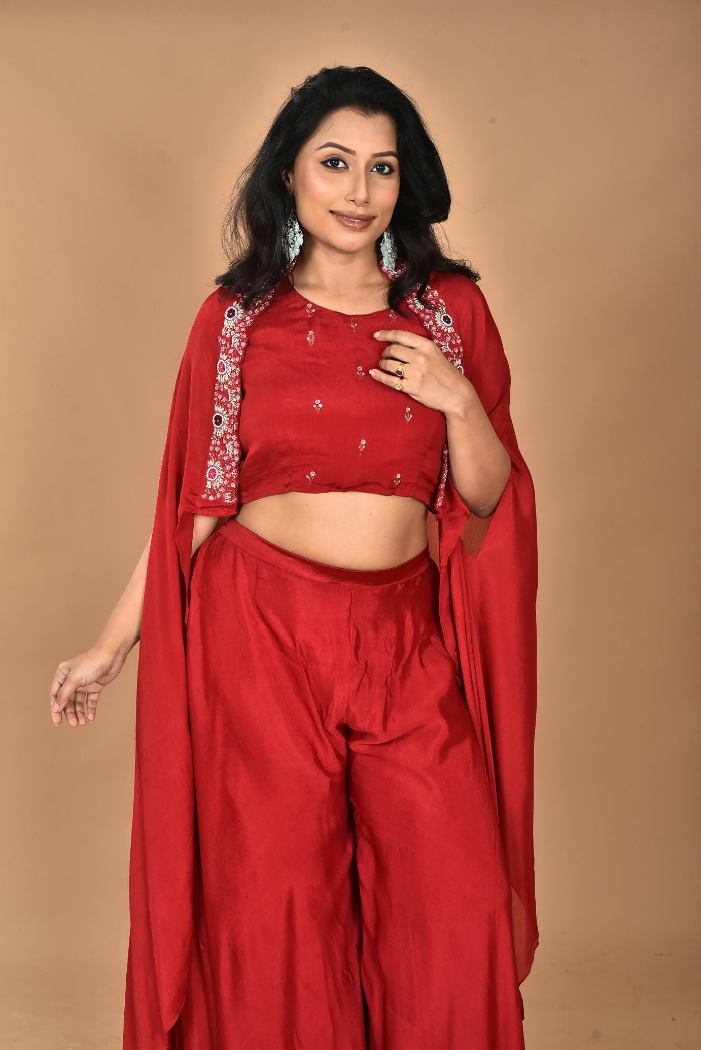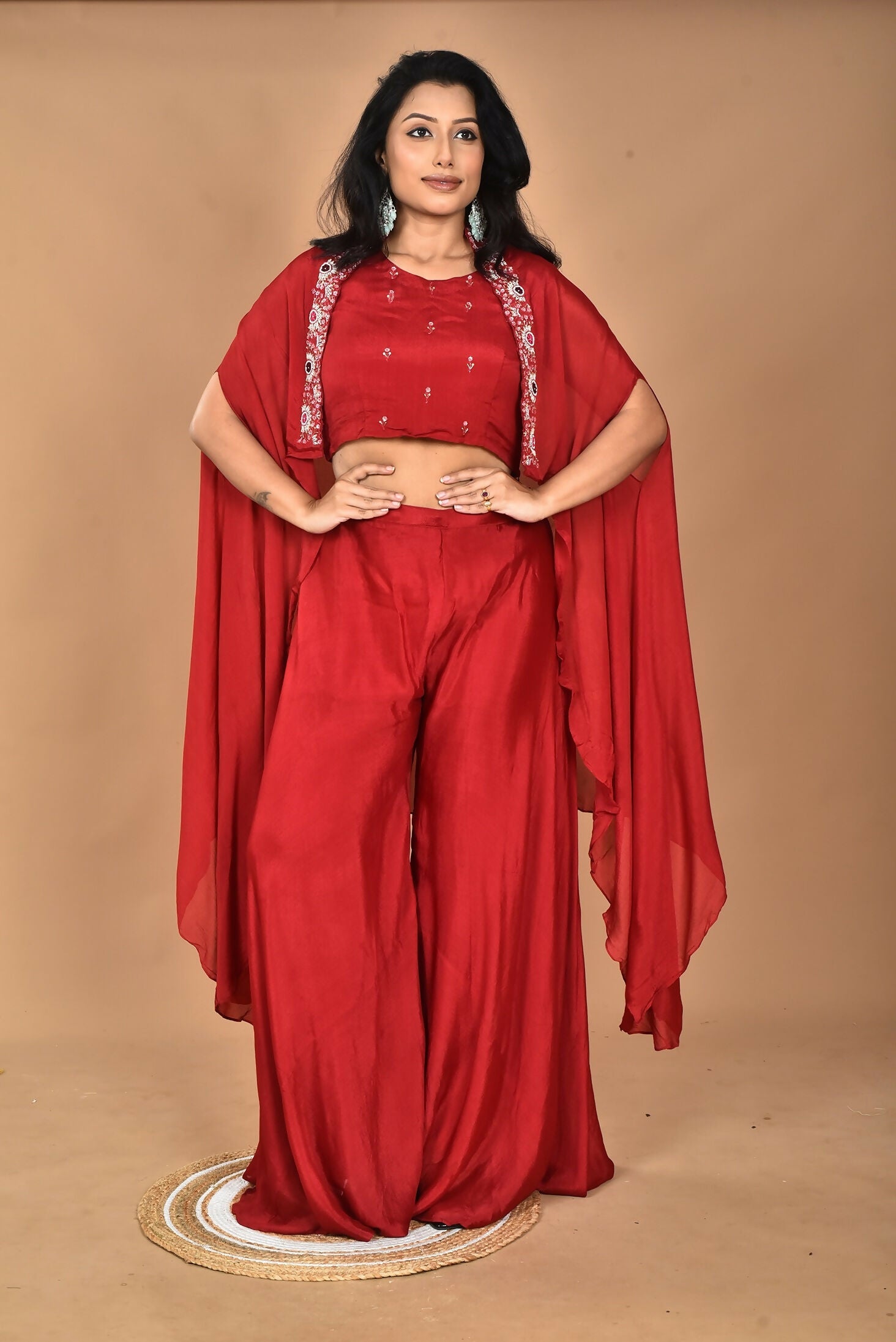 Morchari Women And Hand Embroidery Palazzo Set-Maroon
