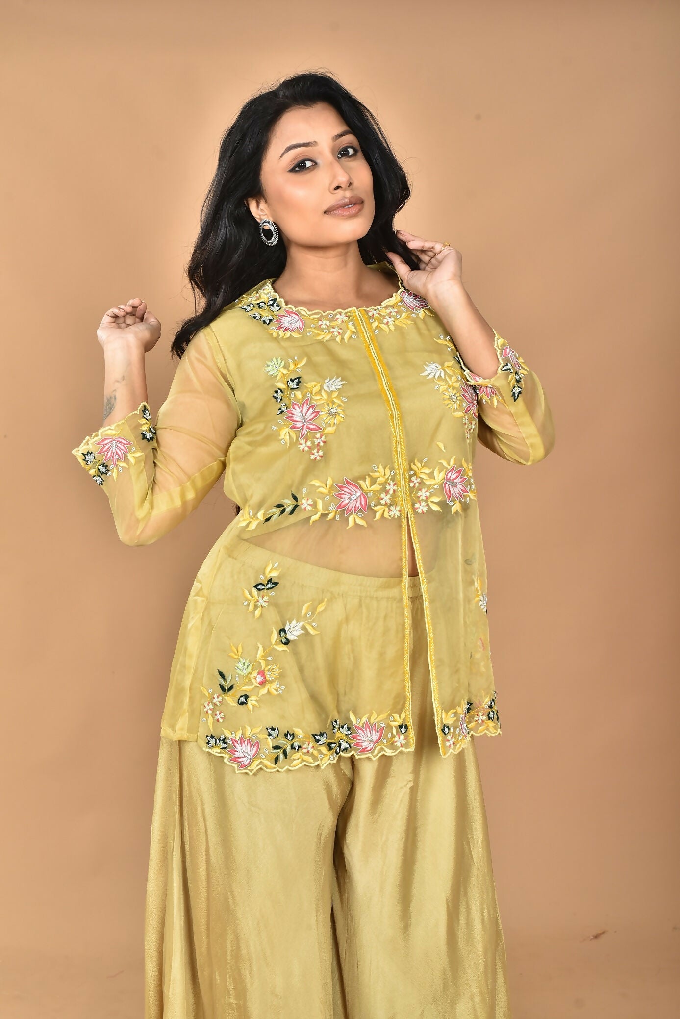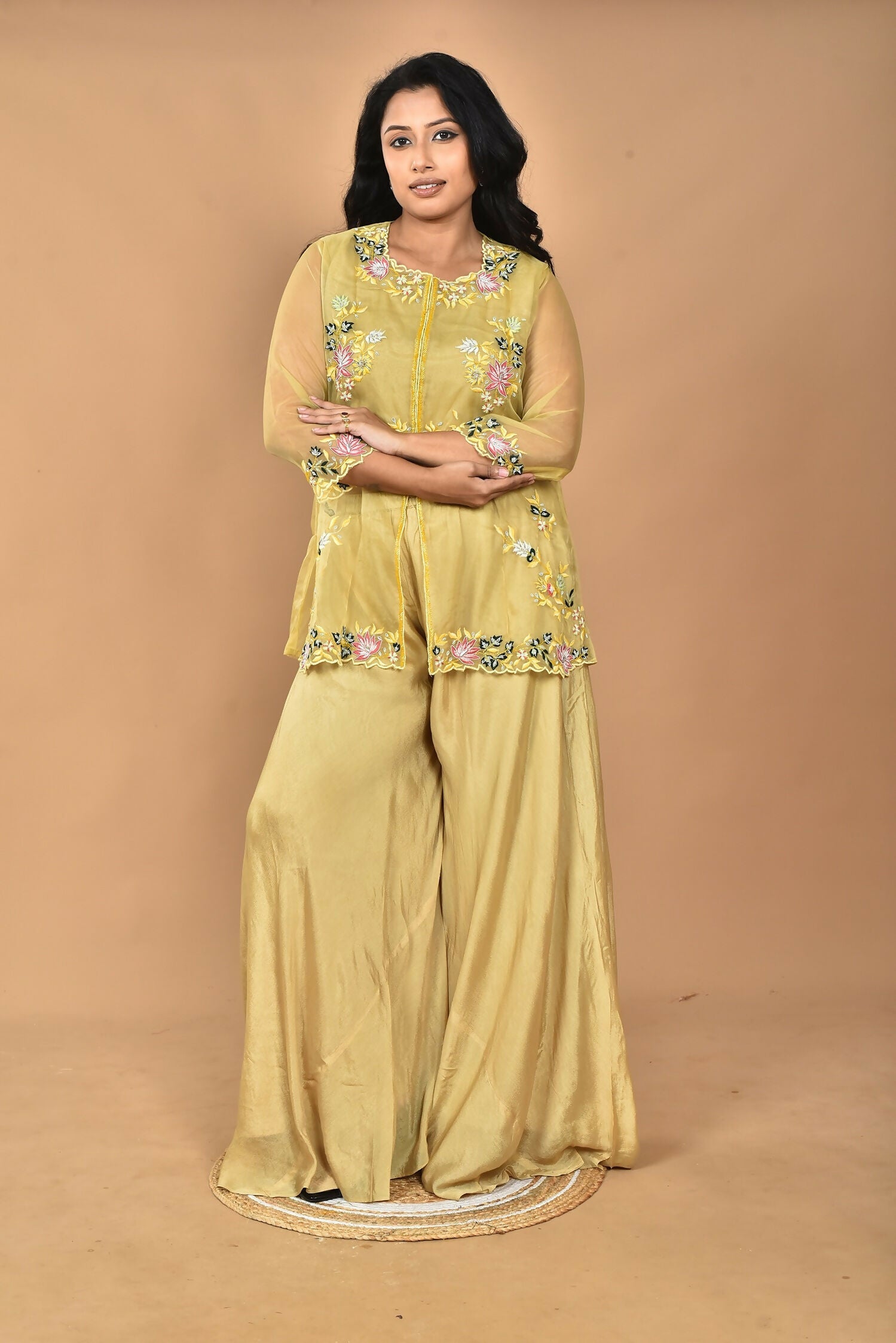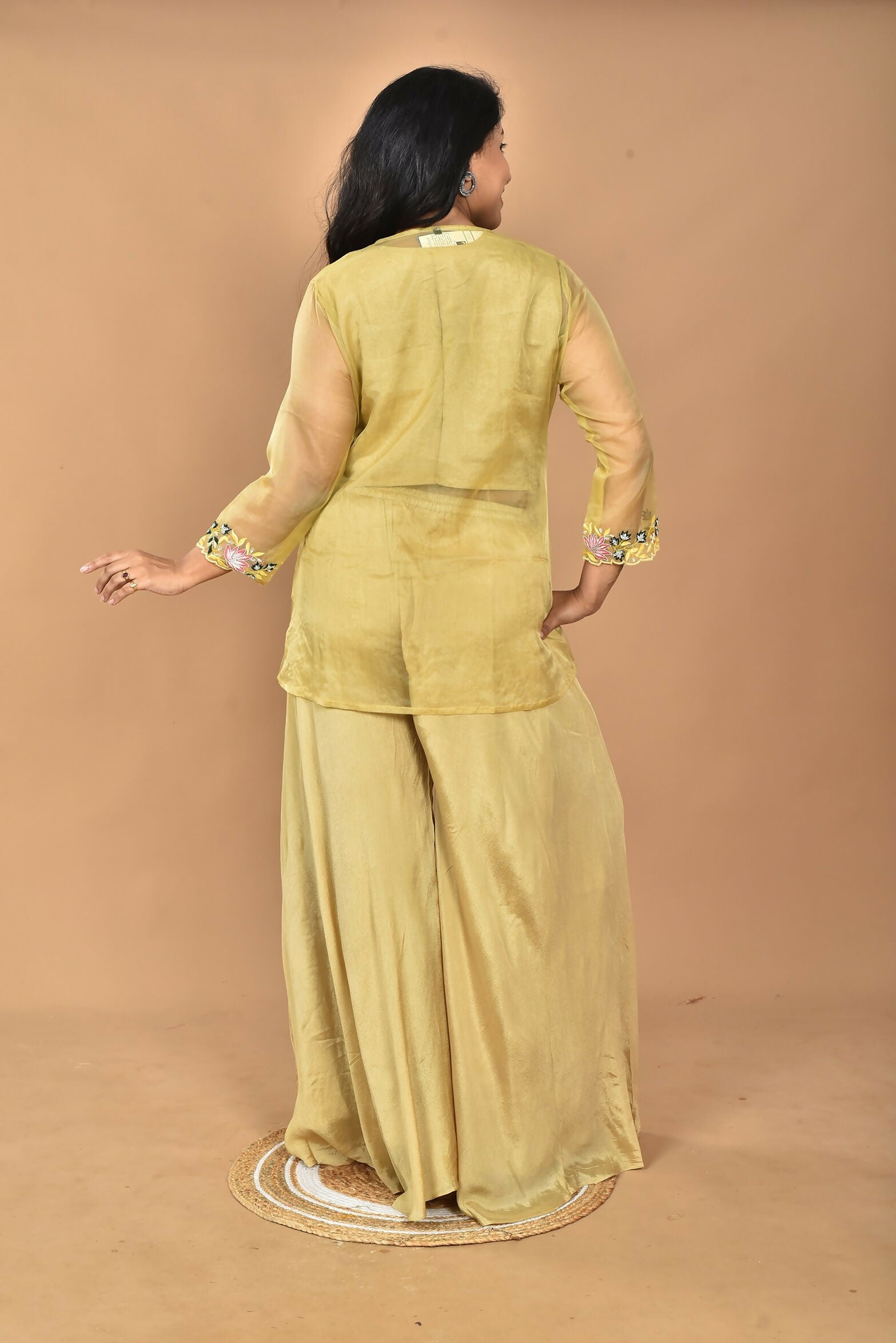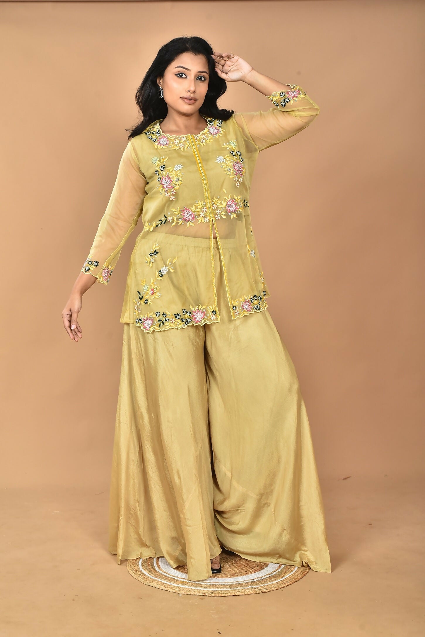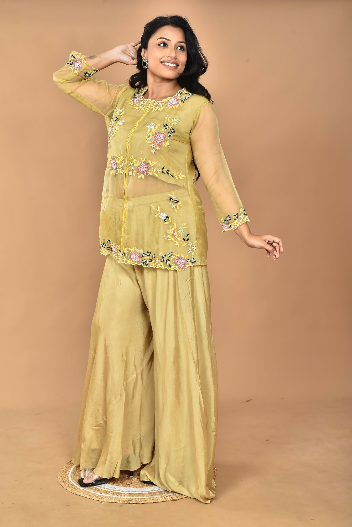 Morchari Women And Hand Embroidery Palazzo Set-Mustard