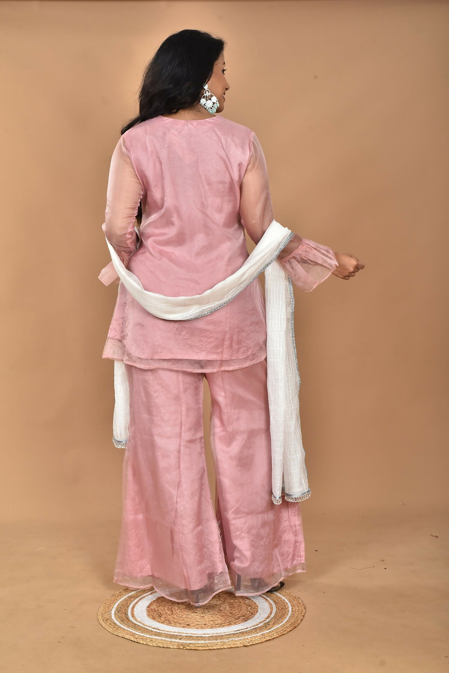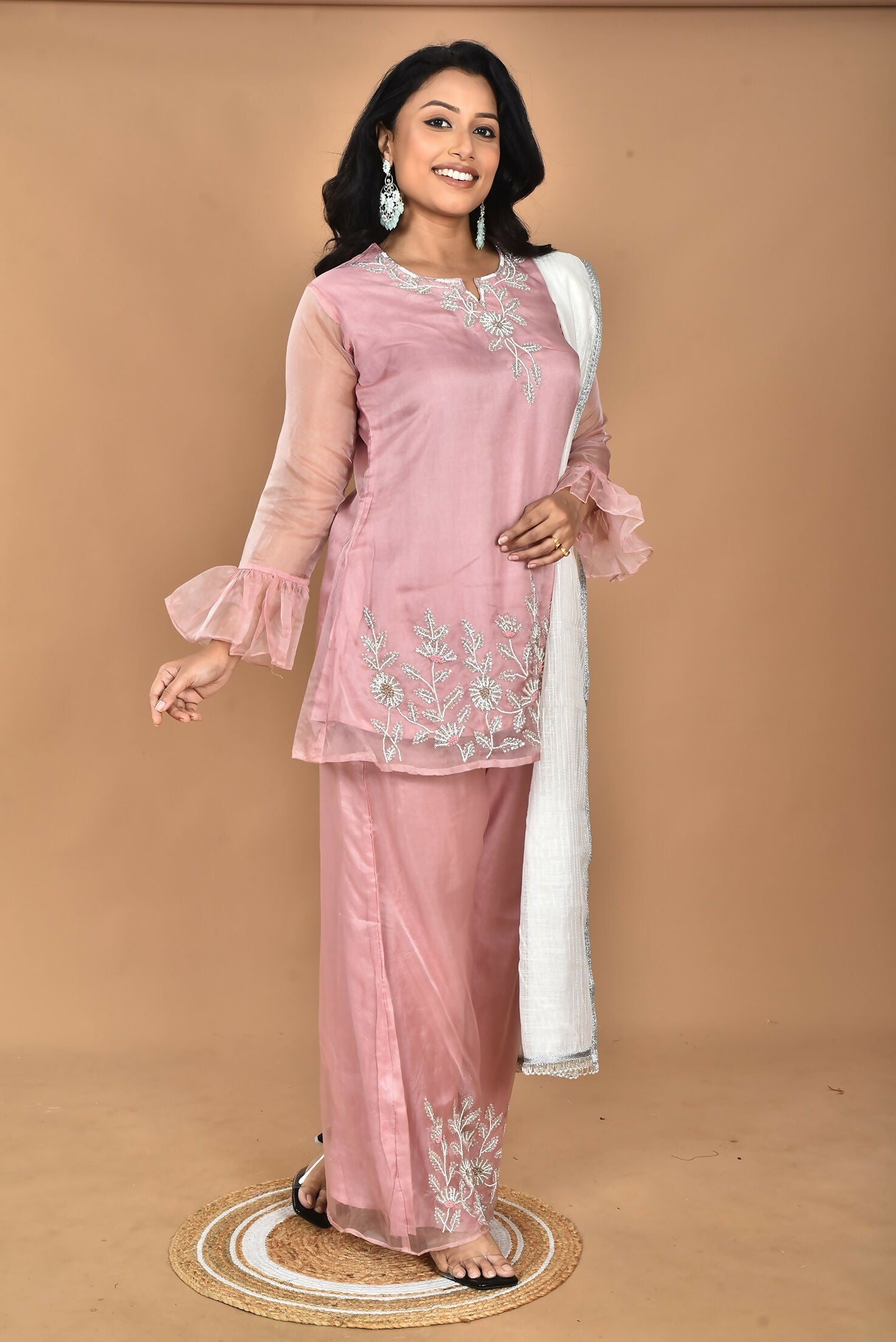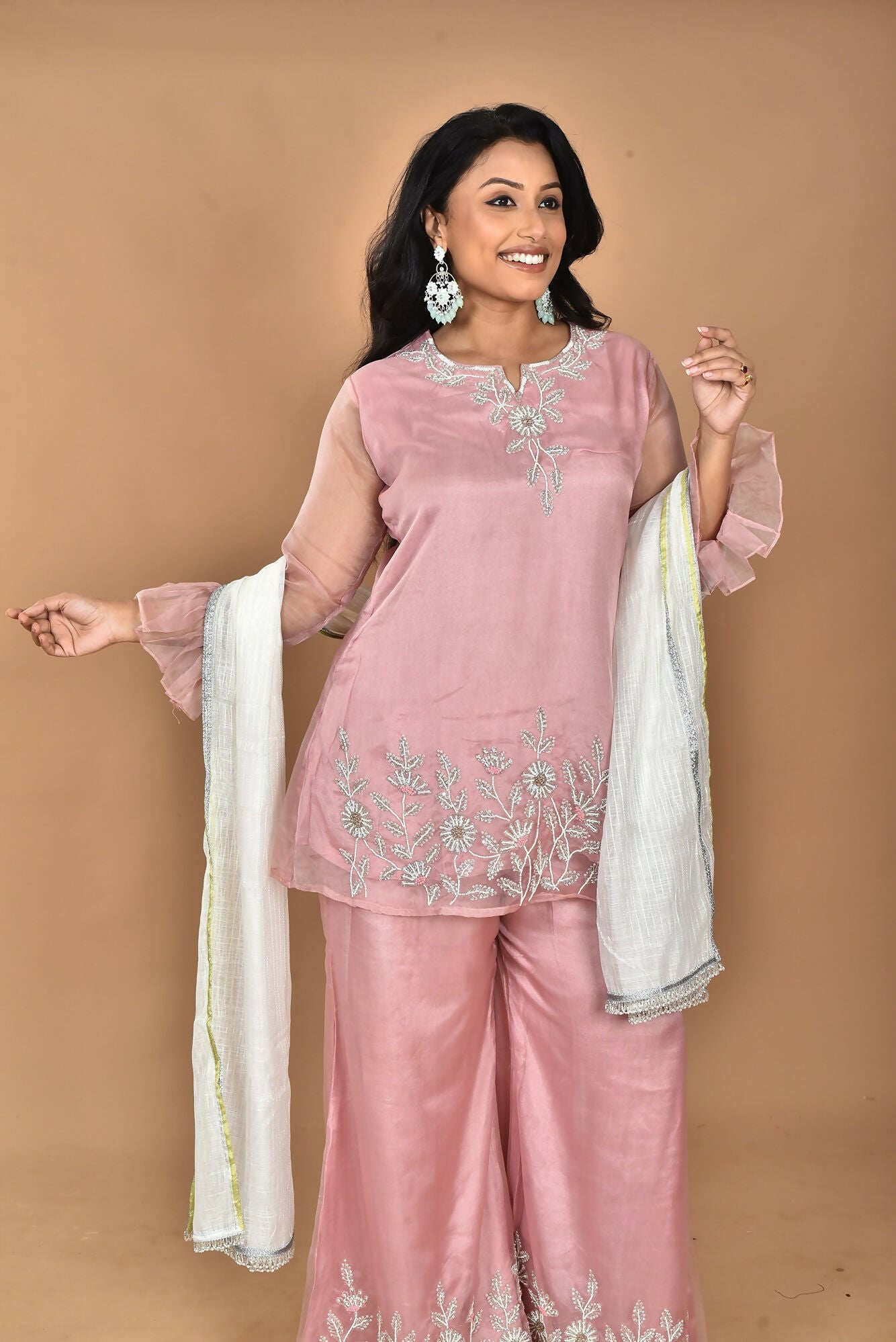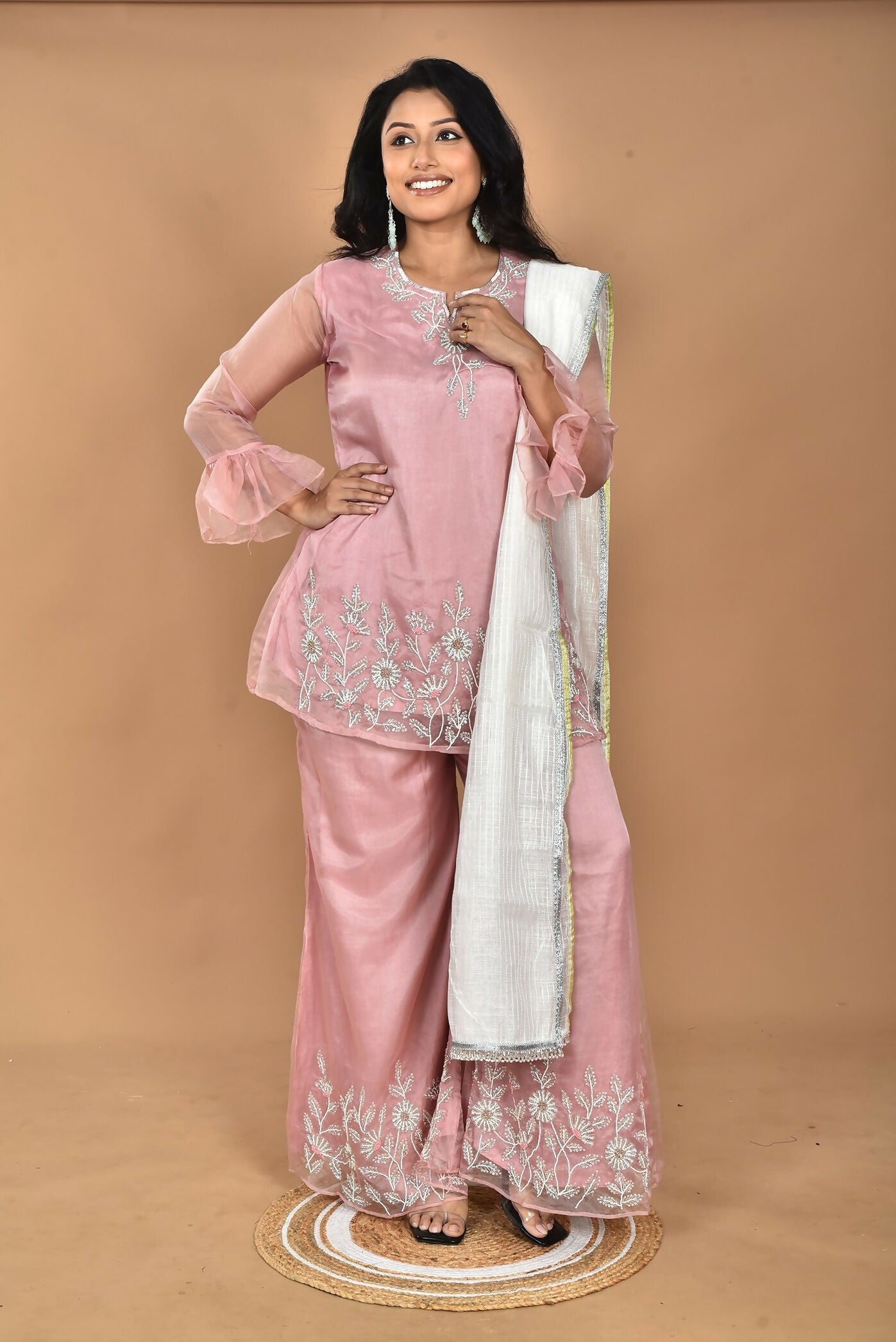 Morchari Women And Hand Embroidery Palazzo Set-Peach