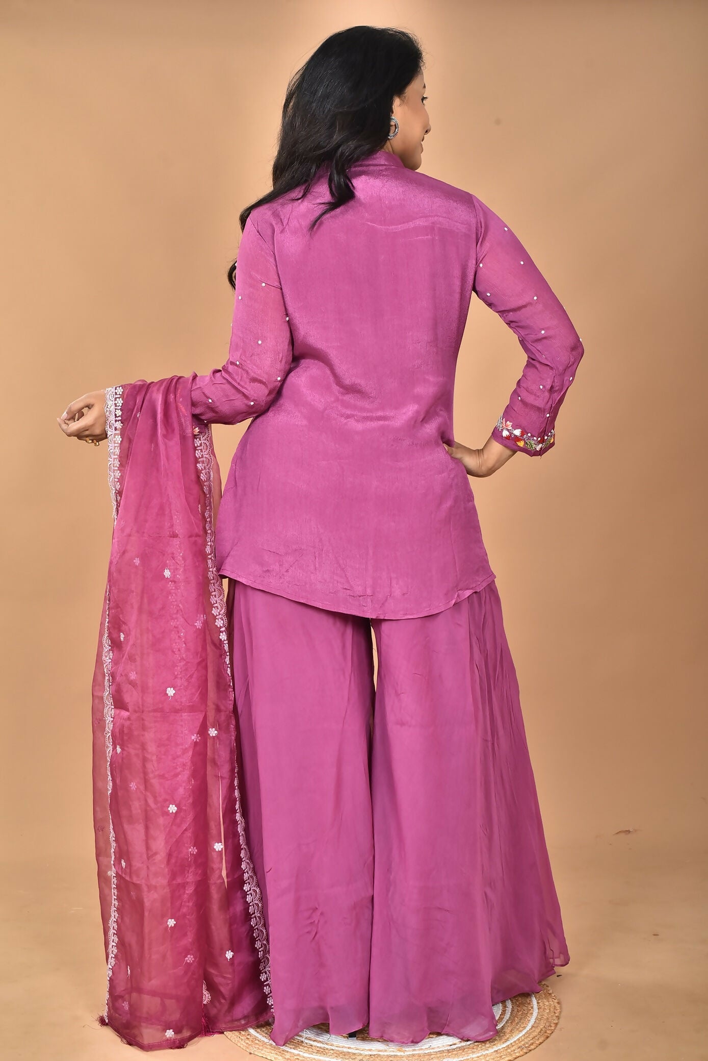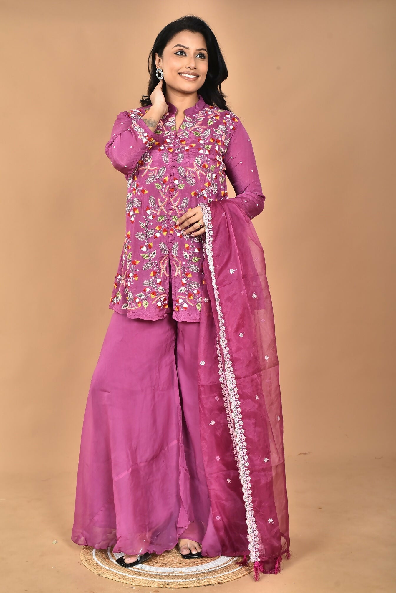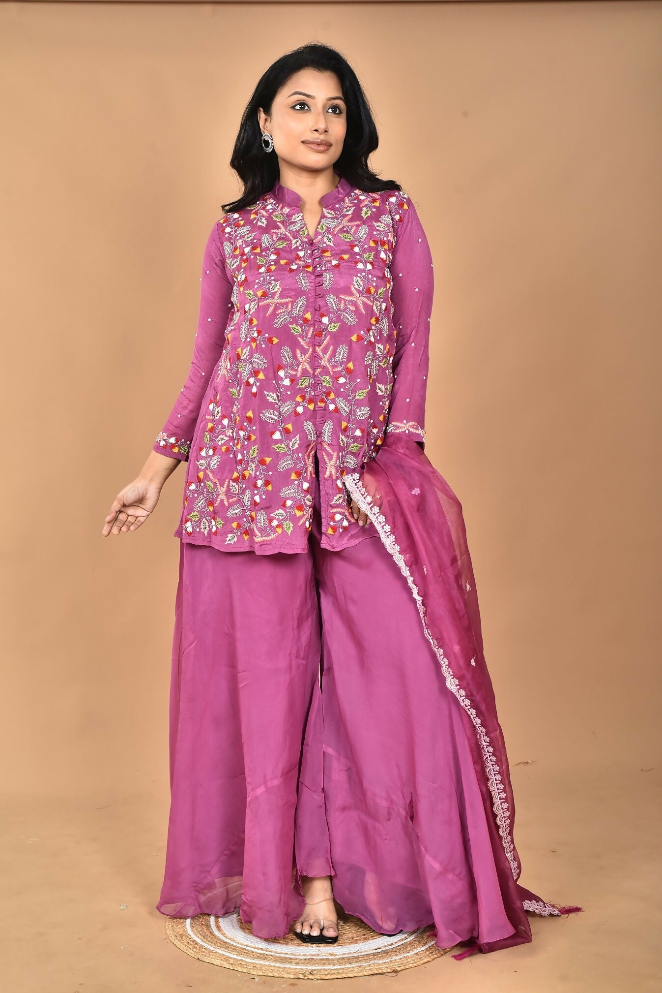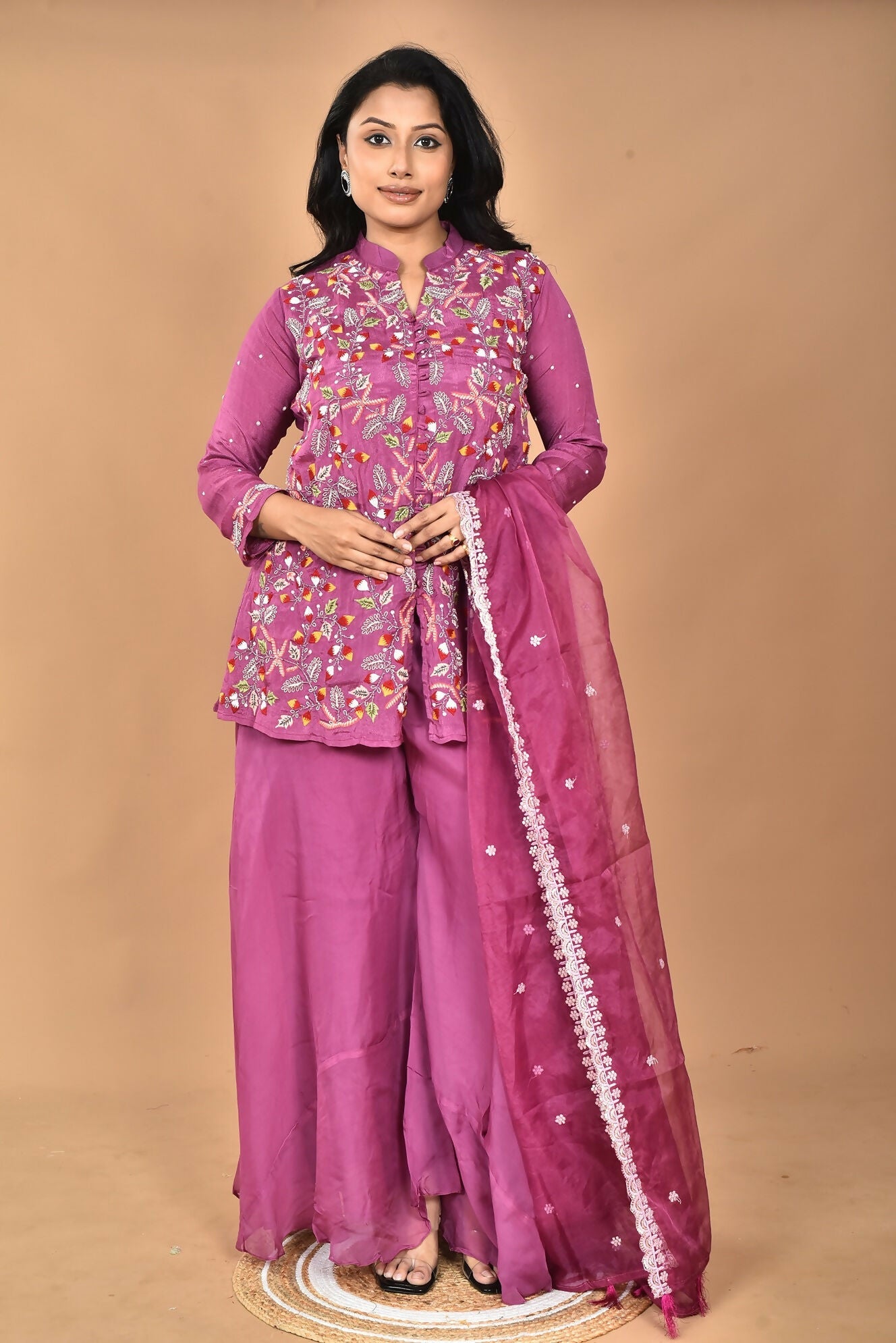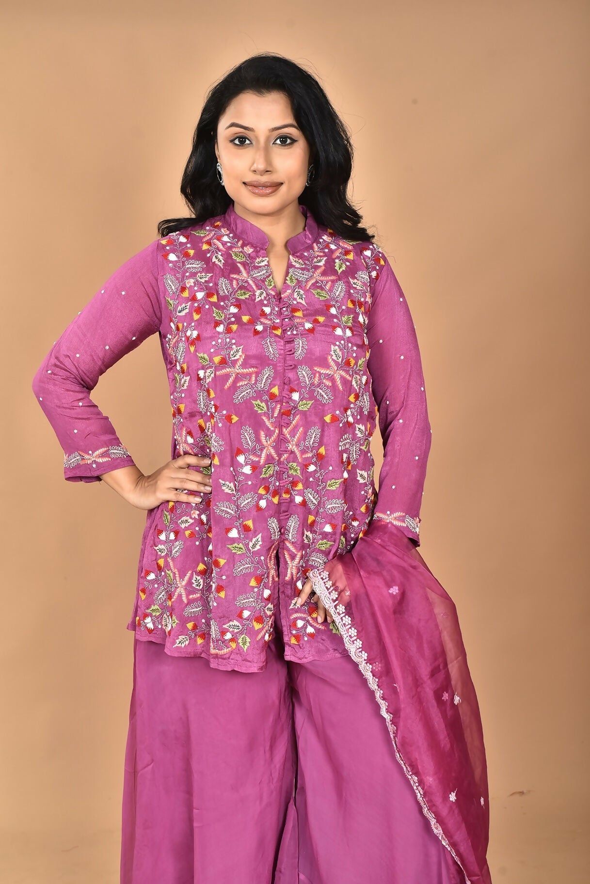 Morchari Women And Hand Embroidery Palazzo Set-Purple