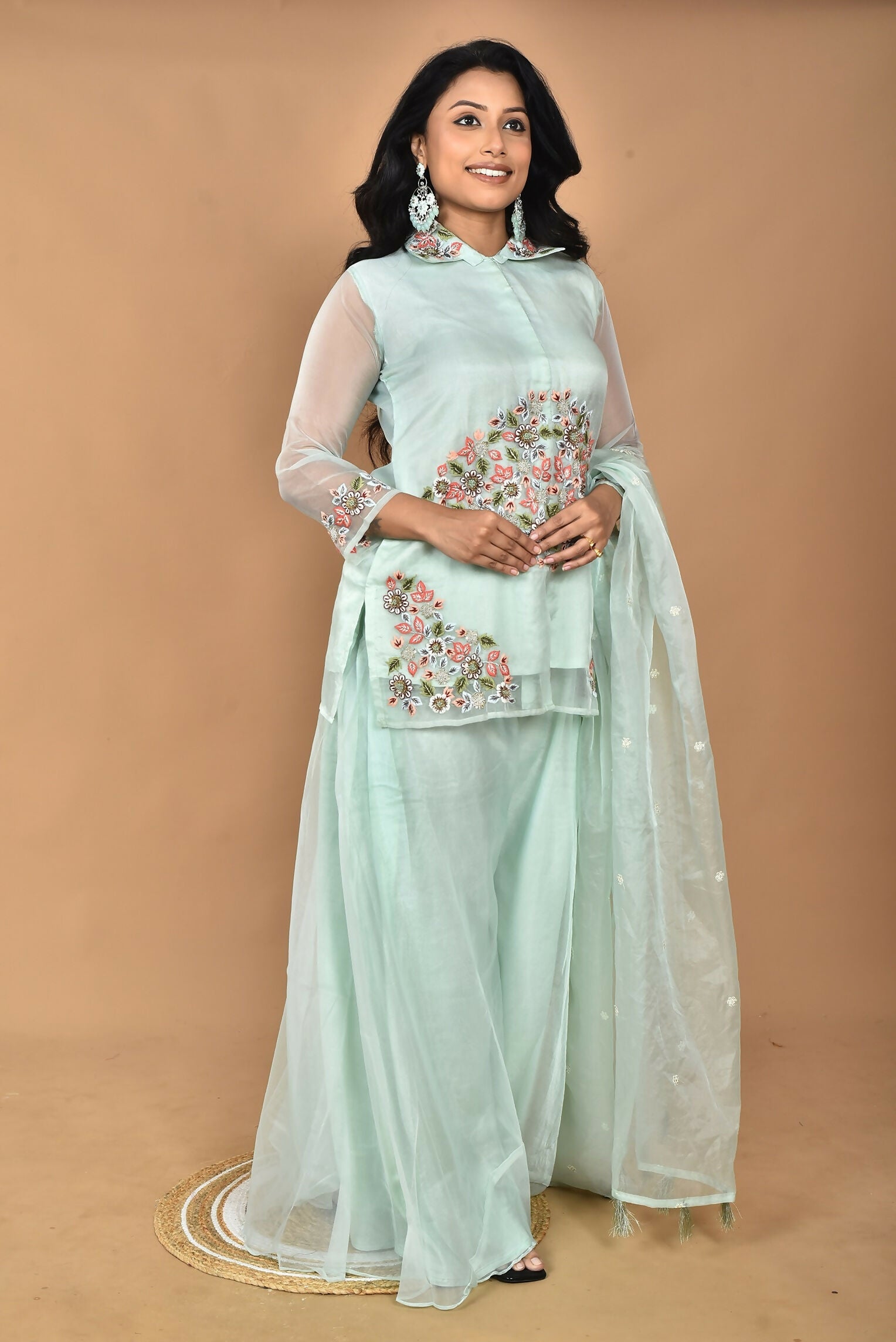 Morchari Women And Hand Embroidery Palazzo Set-Sea Green