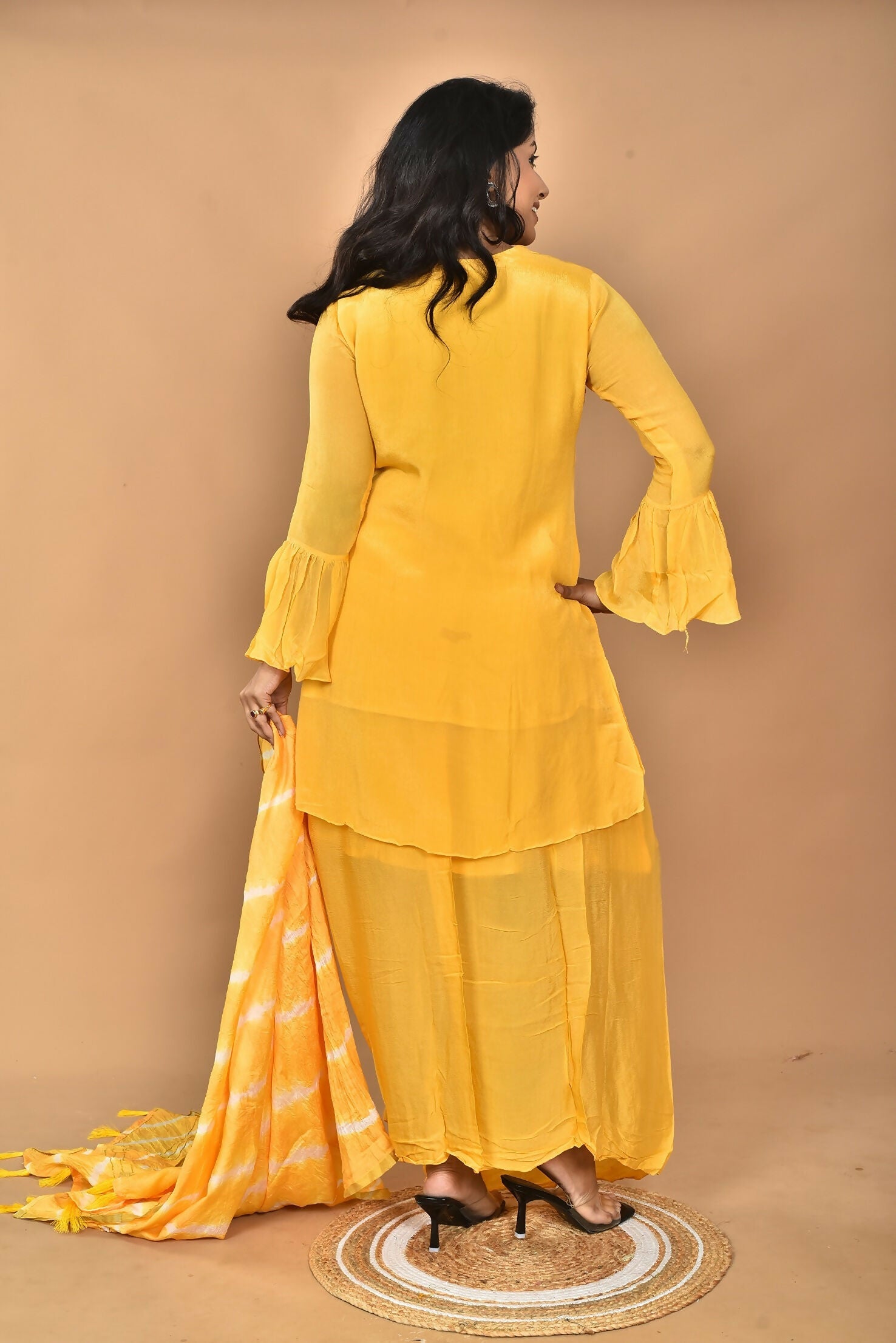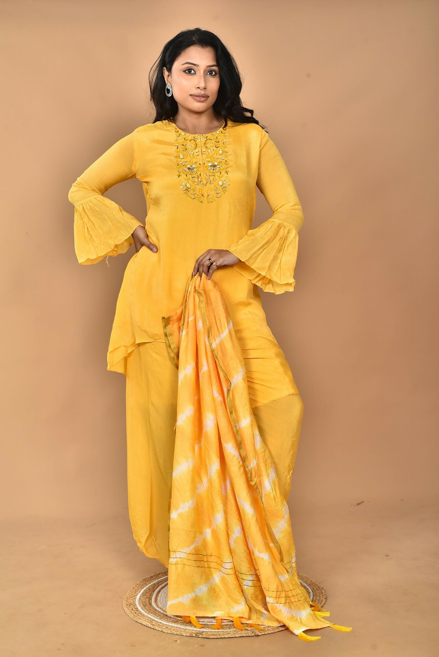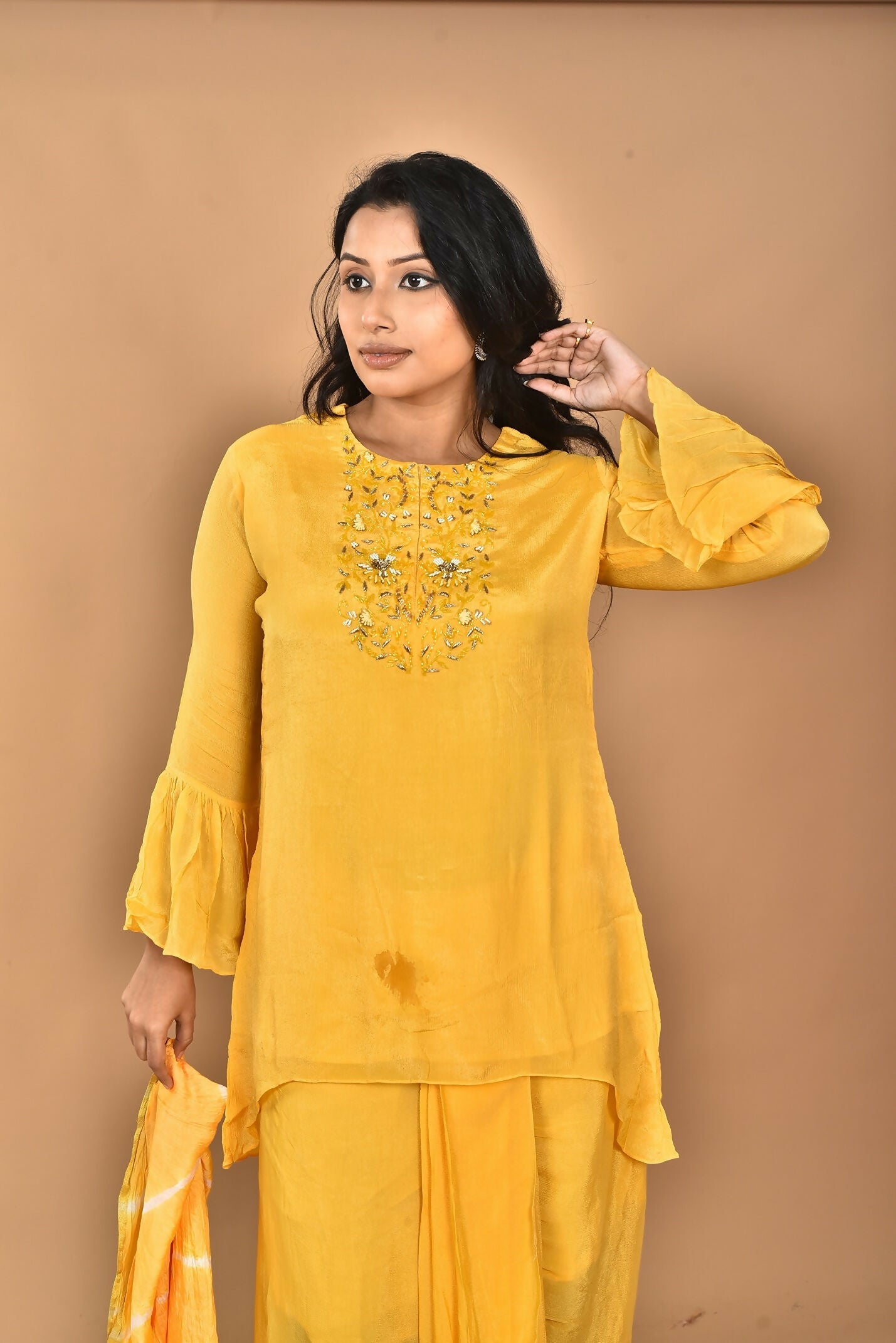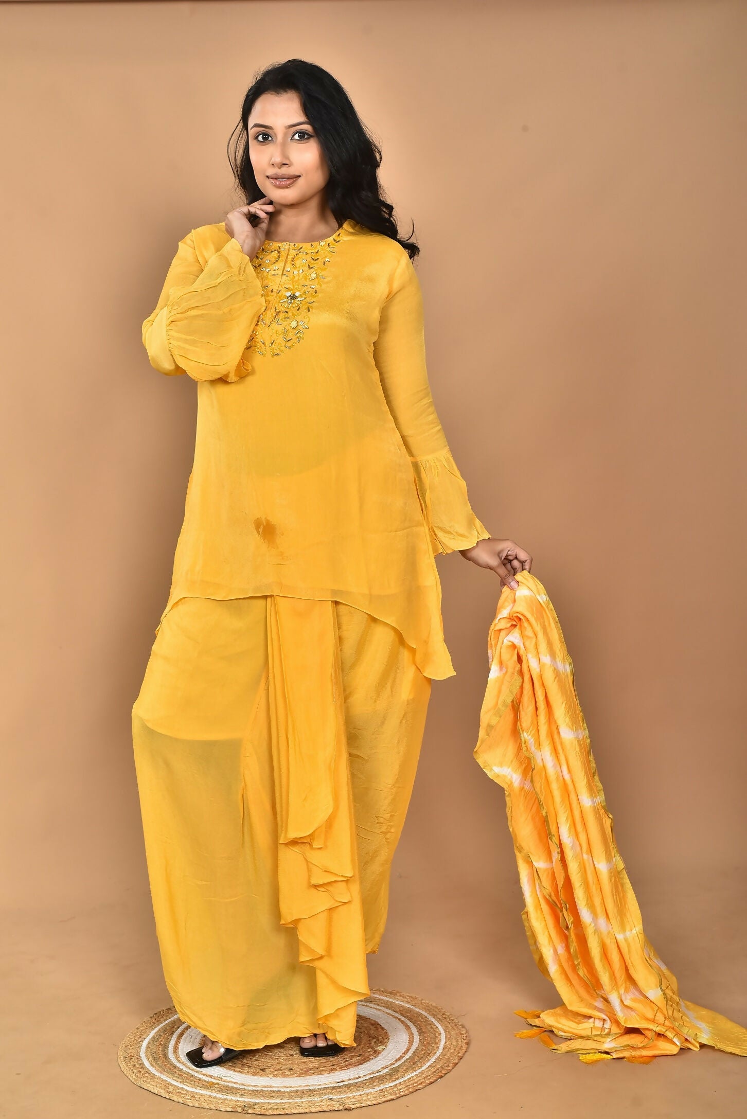 Morchari Women And Hand Embroidery Palazzo Set-Yellow