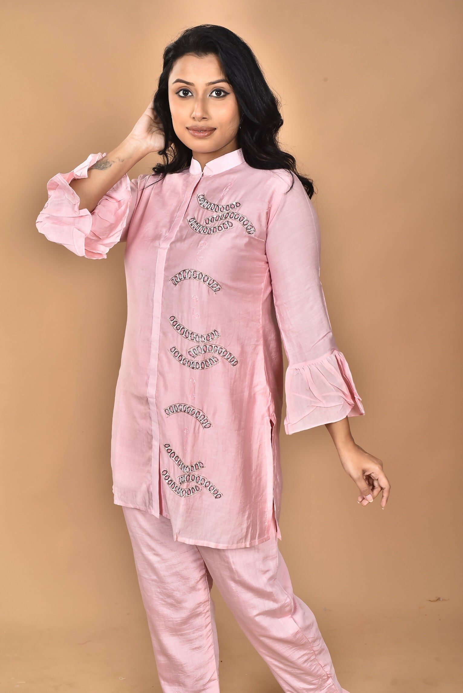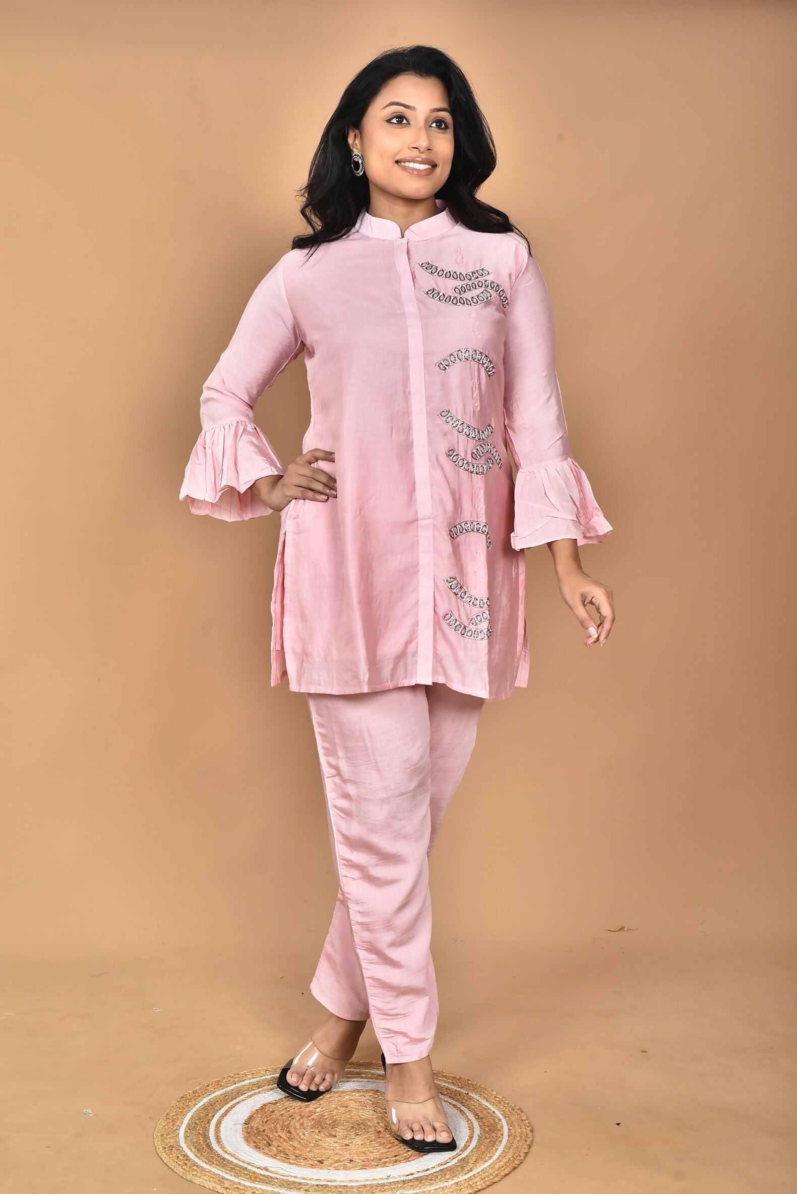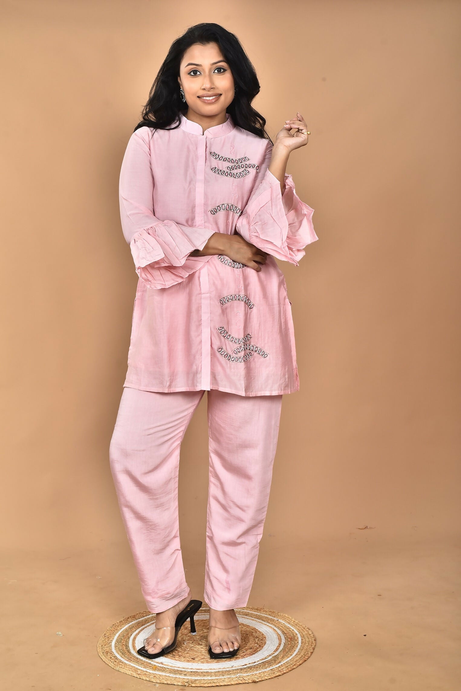 Morchari Women Hand Embroidery Co-Ords-Pink