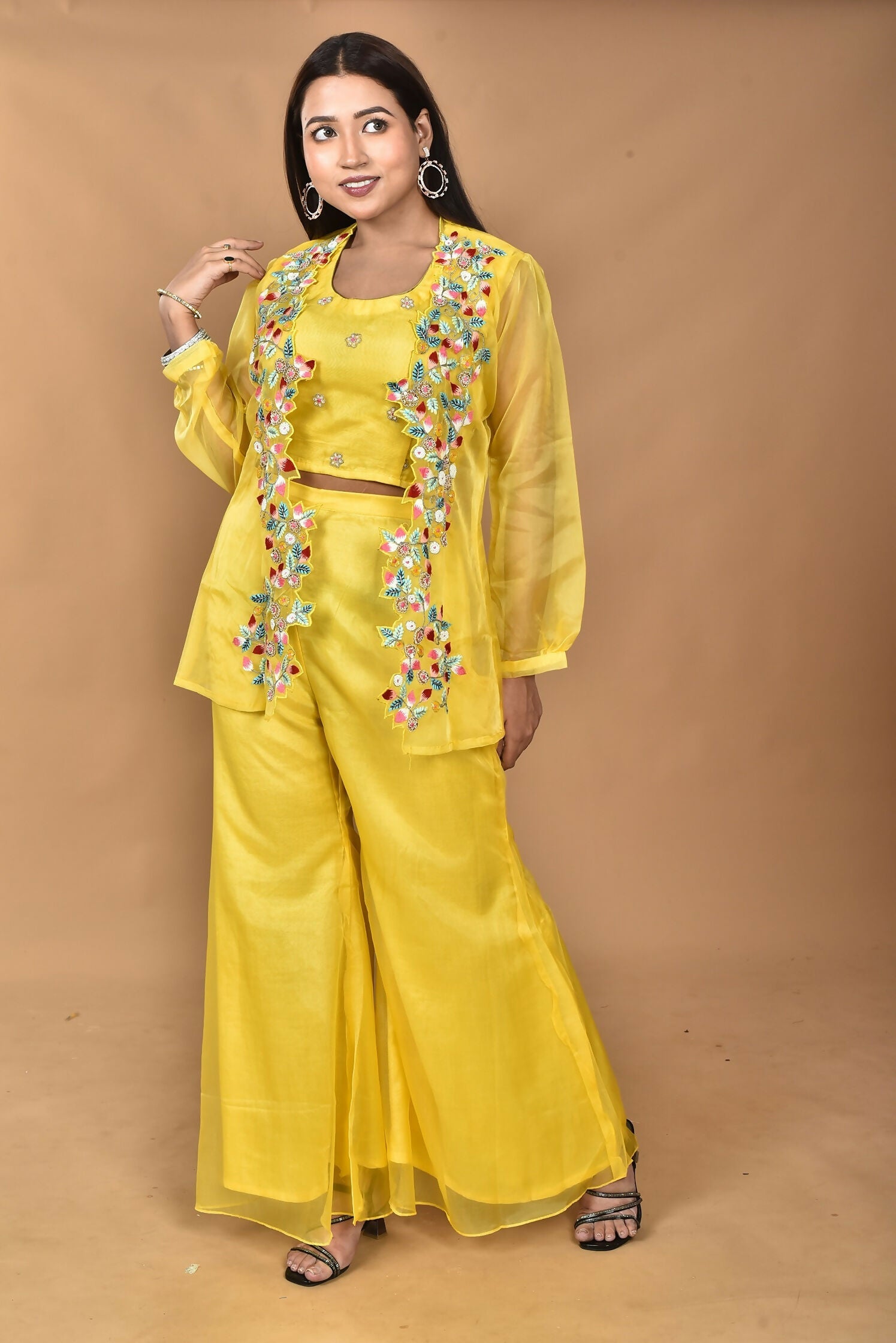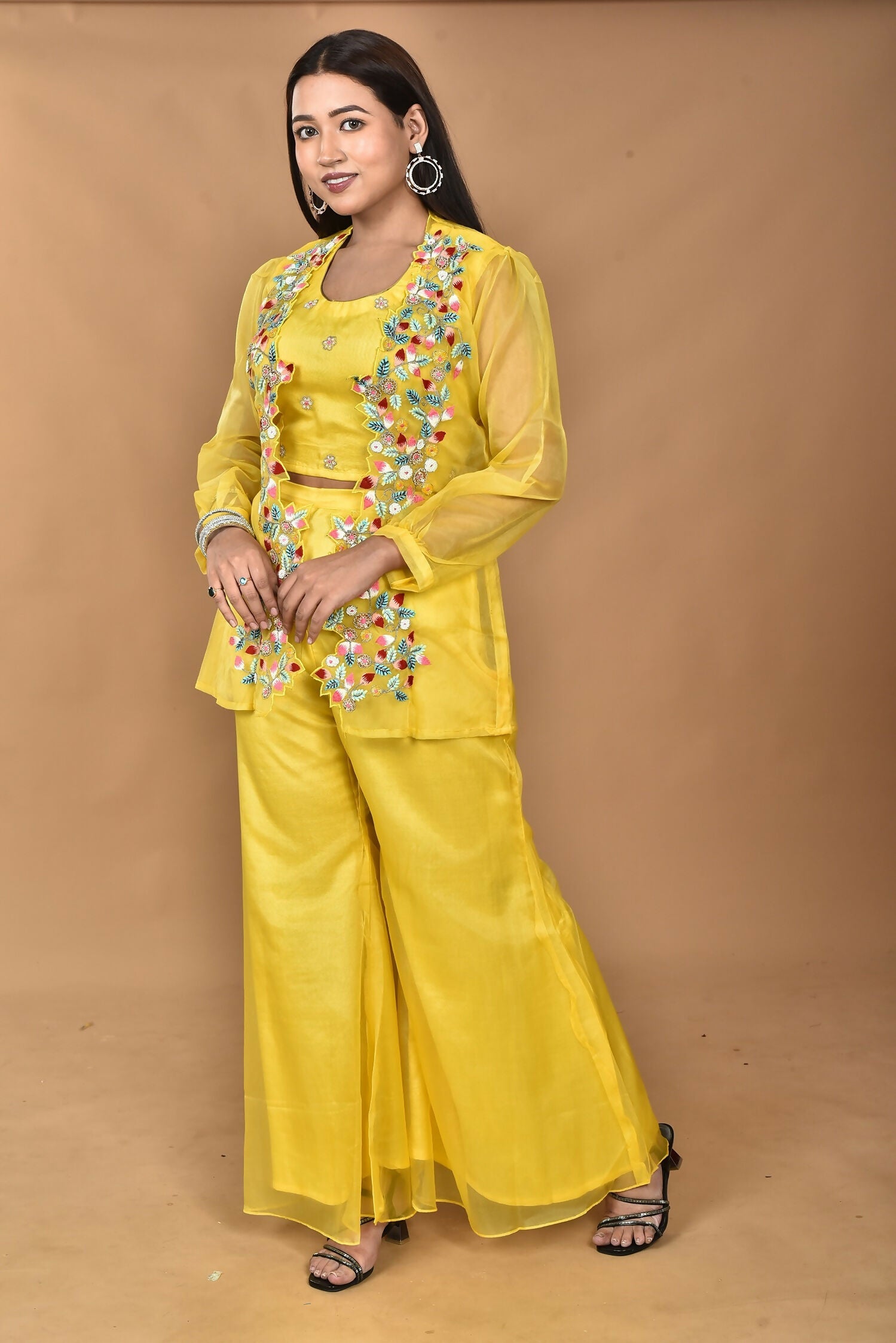 Morchari Women Hand Embroidery Crop Top-Yellow