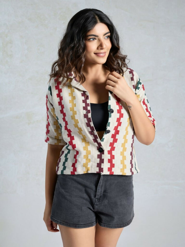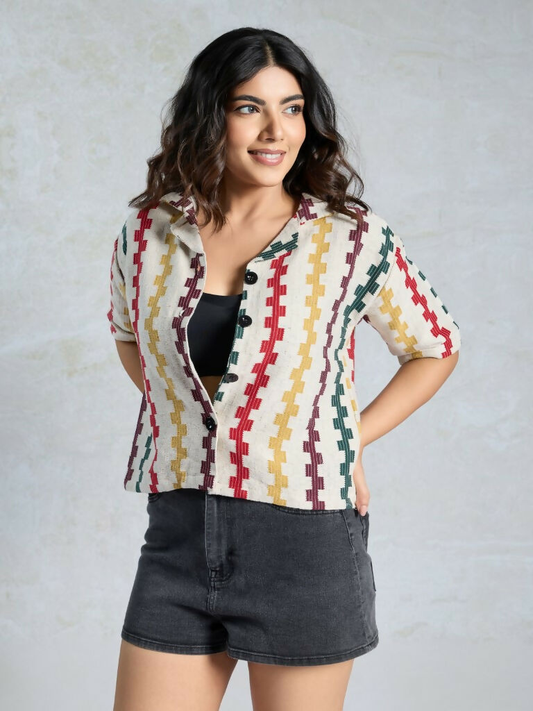 Multi Knited Wevon Designer Shirt - Hiral Fashion