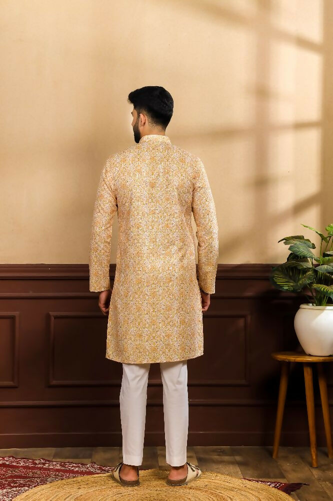 Mustard Art Silk Digital Printed, Embroidery Work Kurta Set - Mahotsav