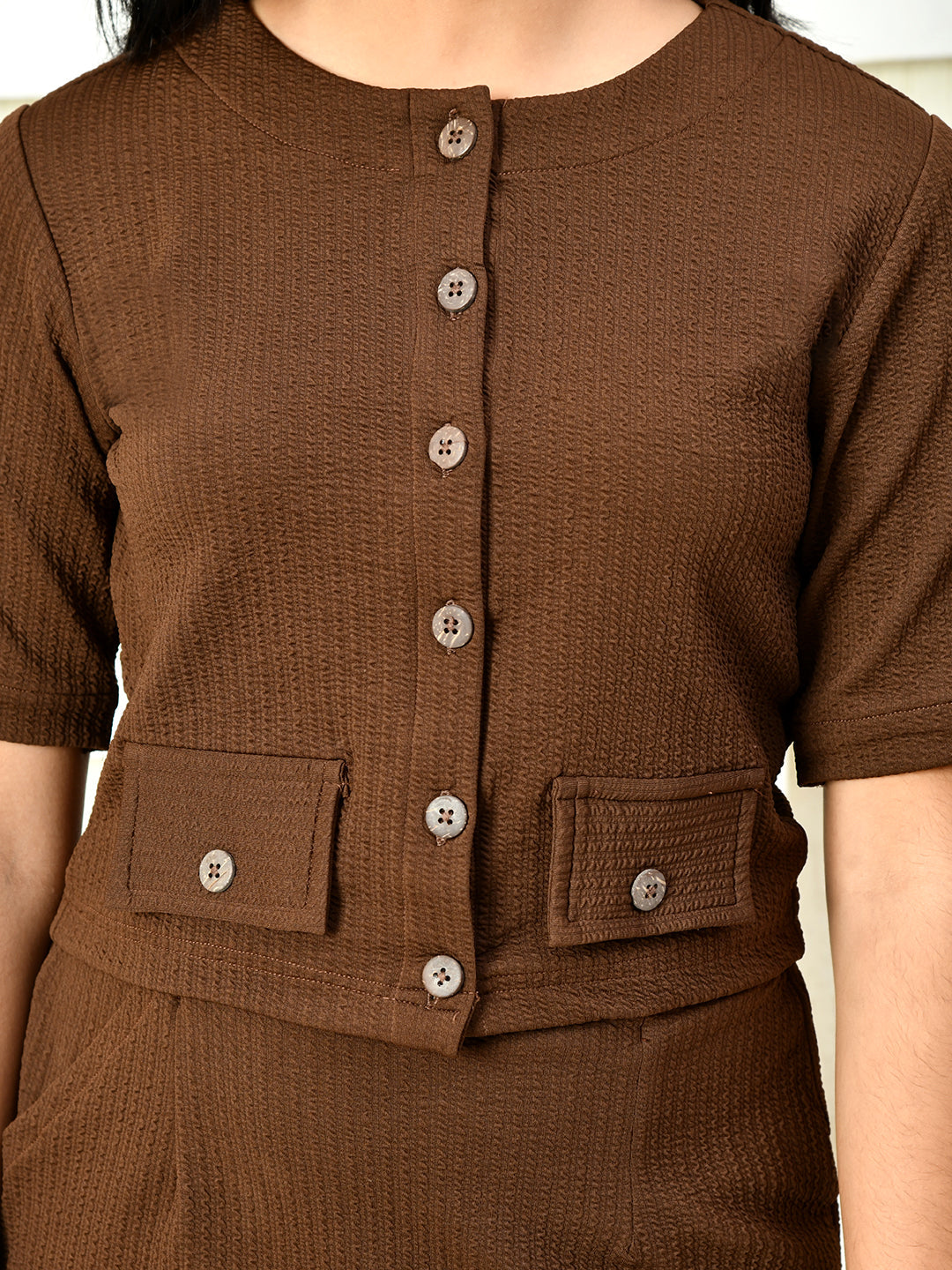 Myshka Girls Brown Solid Polyester Top With Skirt