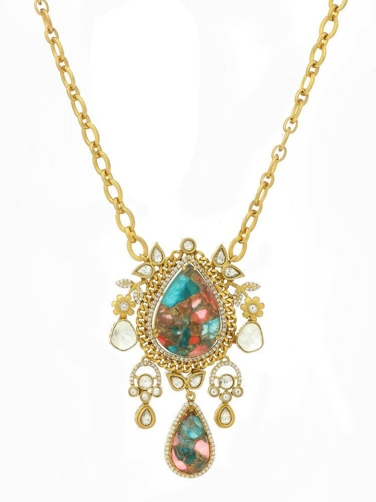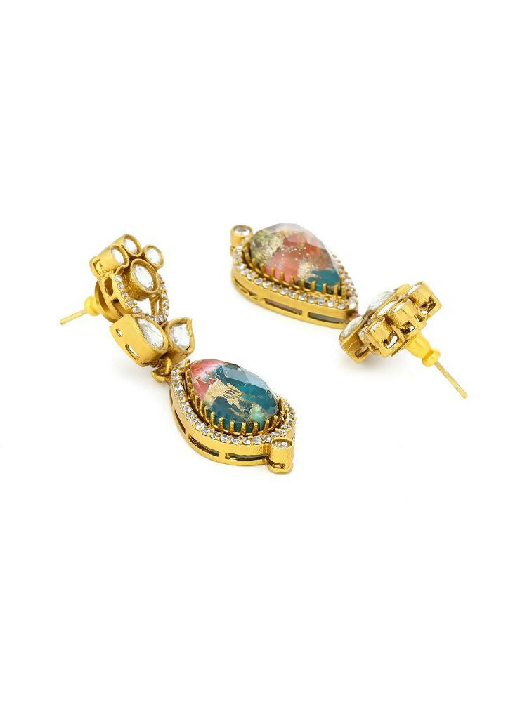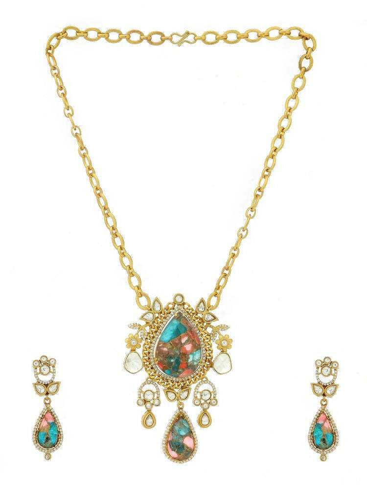 Natural Stones Antique Finish Earrings and Necklace set - Ruby Raang