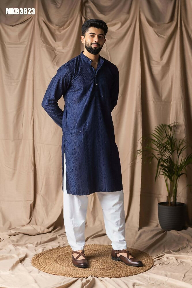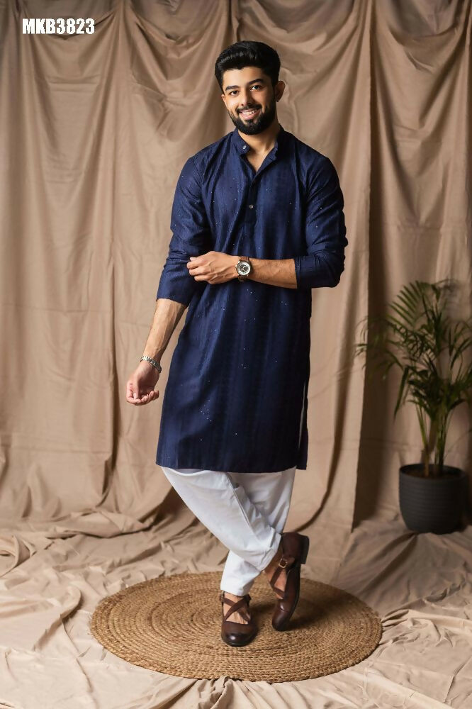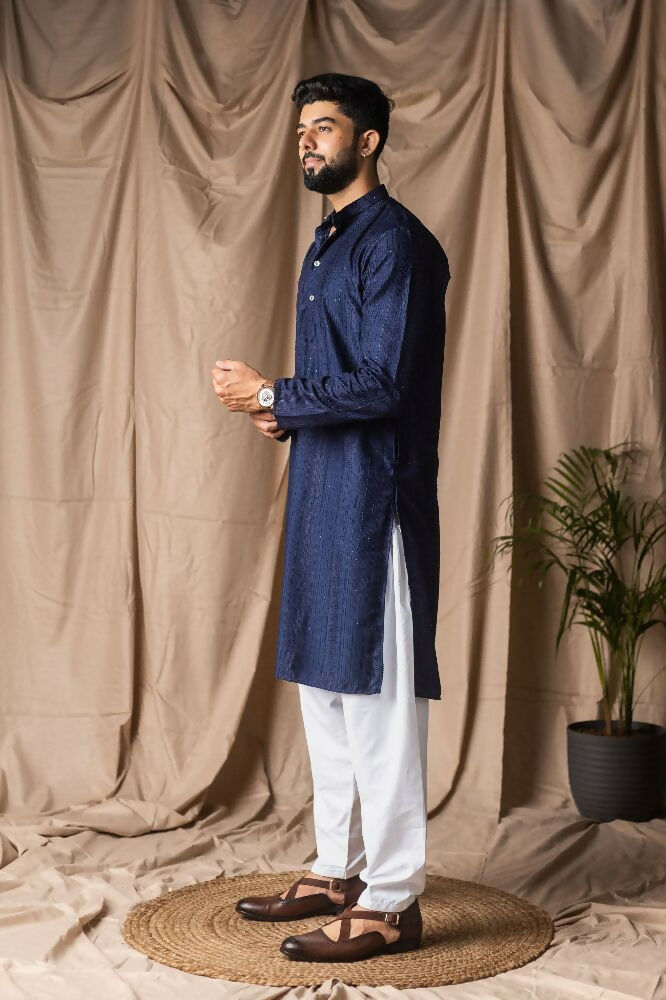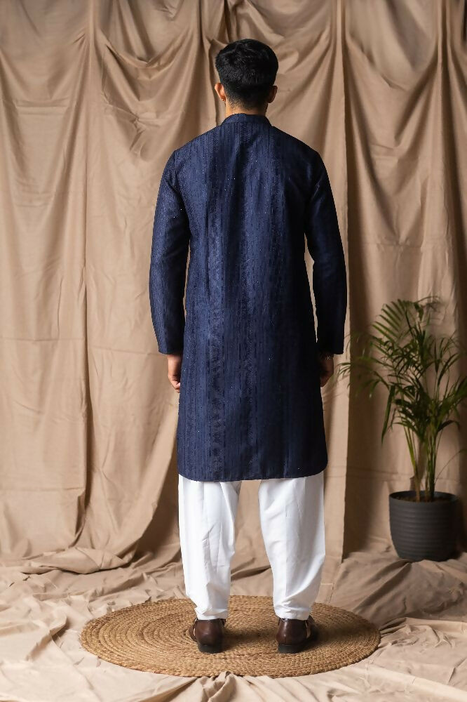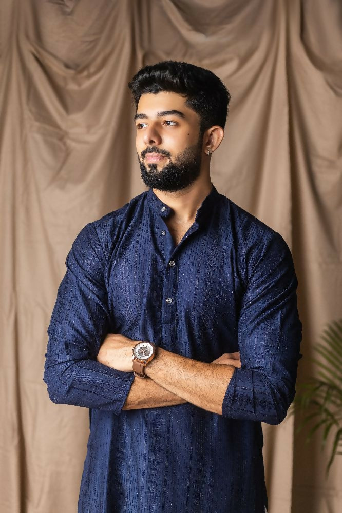 Navy Blue Rayon Thread Embroidery Work Kurta Set - Mahotsav