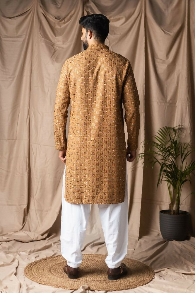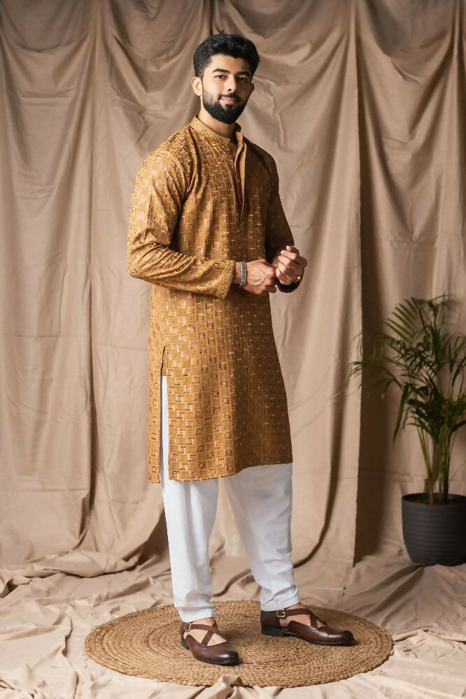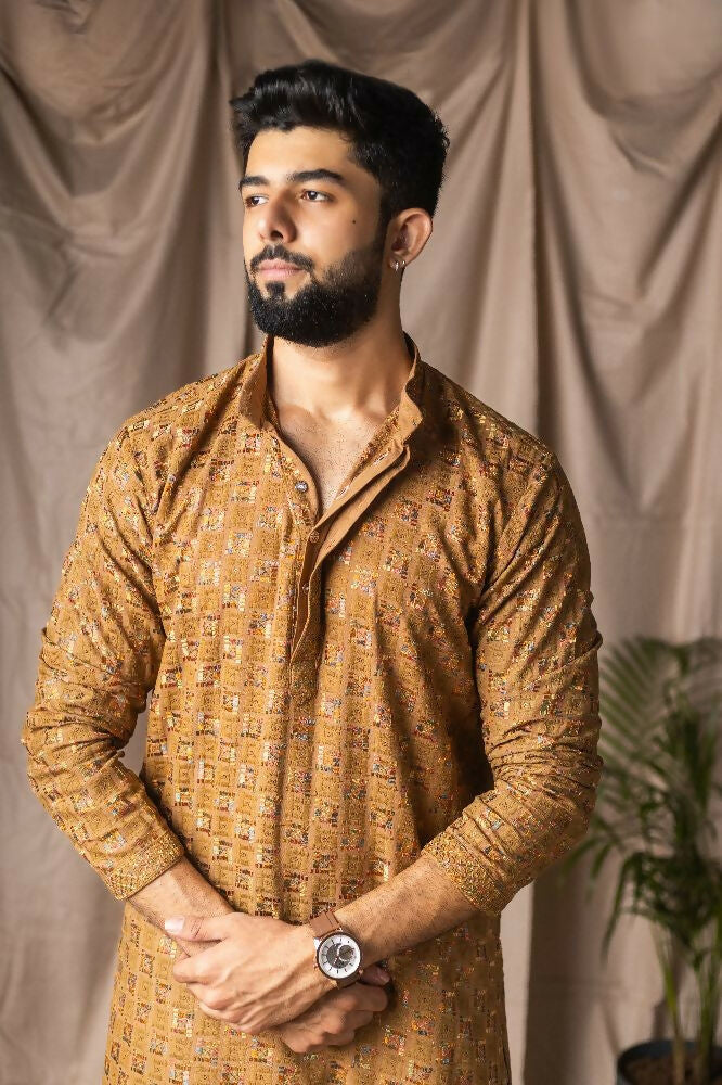 Occur Yellow Rayon Thread Embroidery Work Kurta Set - Mahotsav