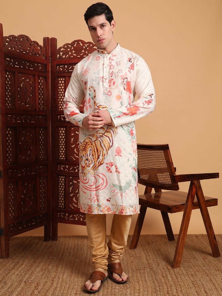 Off White Cotton Printed Chikankari Embroidery Work Kurta - Mahotsav
