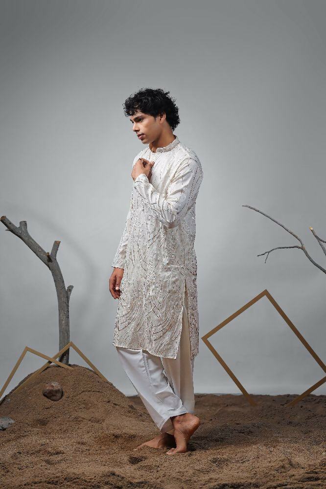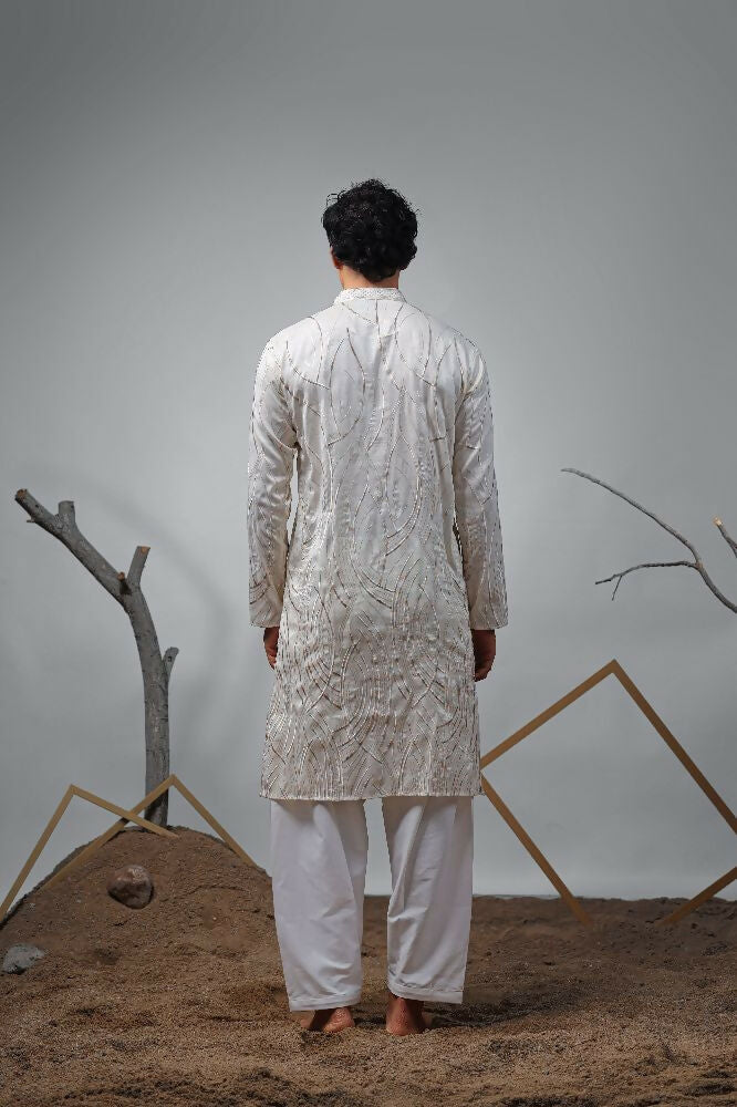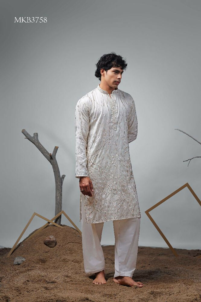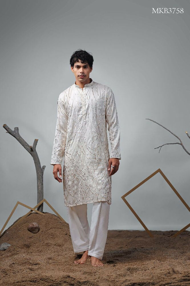 Off White Viscose Designer Embroidery Work Kurta Set - Mahotsav