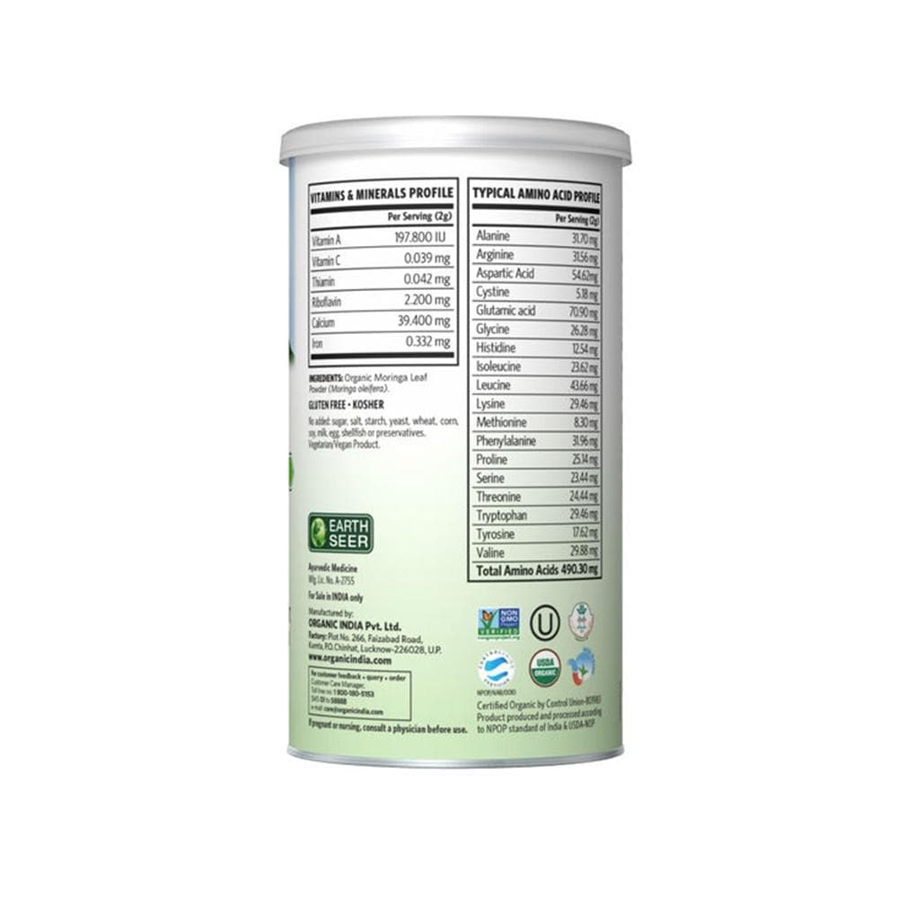 Organic India introduces 100% Certified Moringa Powder that contains organic leaf powder of Moringa oleifera. Moringa powder contains 90+ Nutrients and 40+ Antioxidants, Vitamin A, C, Iron, Protein, Calcium, Magnesium and Potassium. It is a good source of increasing immunity power and overall energy level. Good for lactating mothers, growing children, athletes, body builders, sports persons.