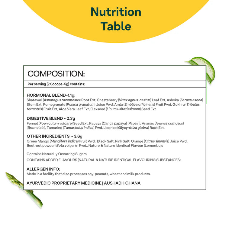Red Raspberry, Chasteberry, Ashoka, Aloe Vera.