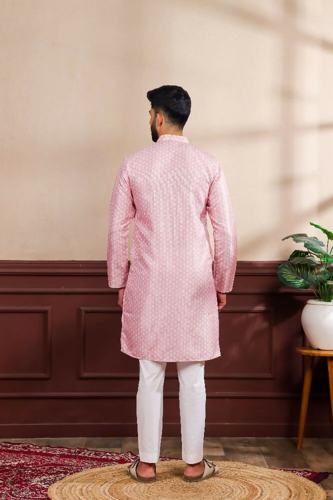 Pink Art Silk Digital Printed, Embroidery Work Kurta Set - Mahotsav