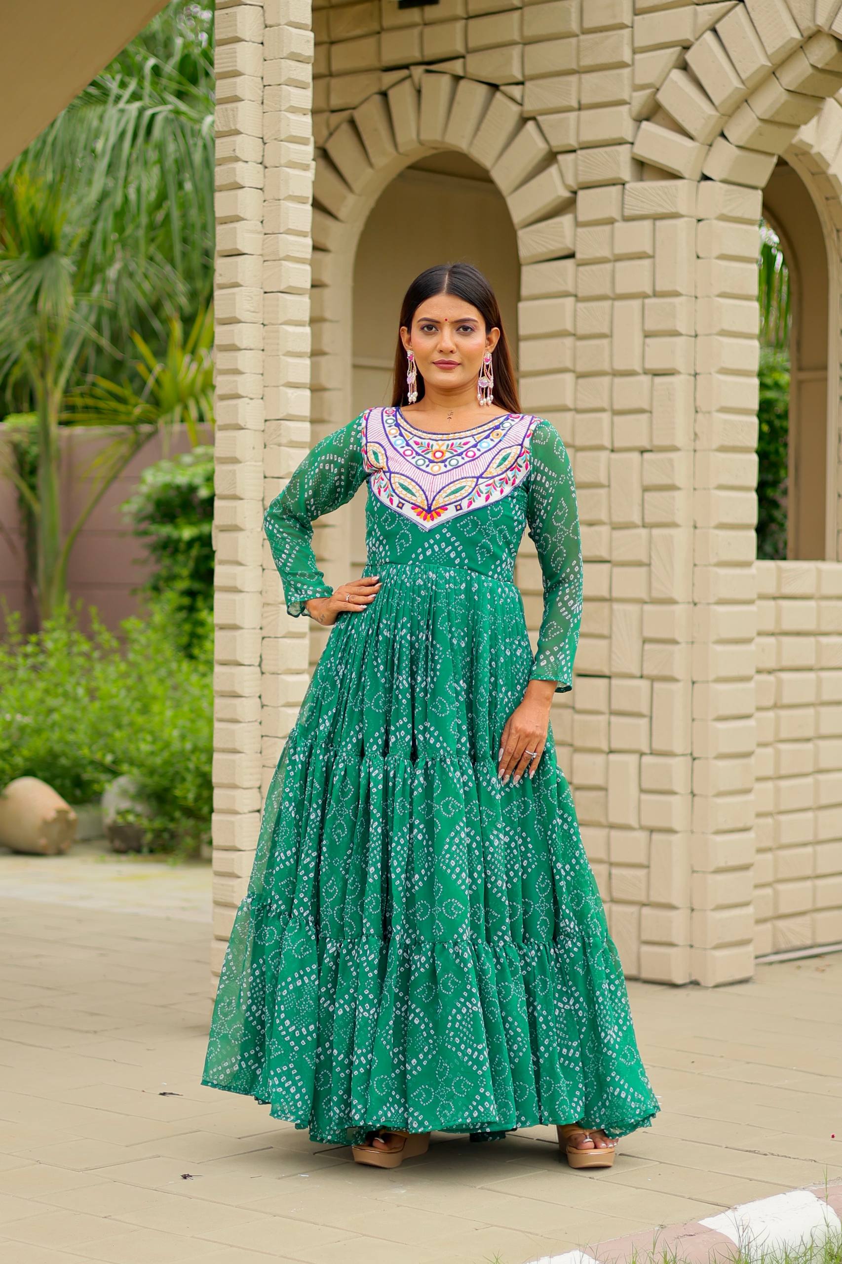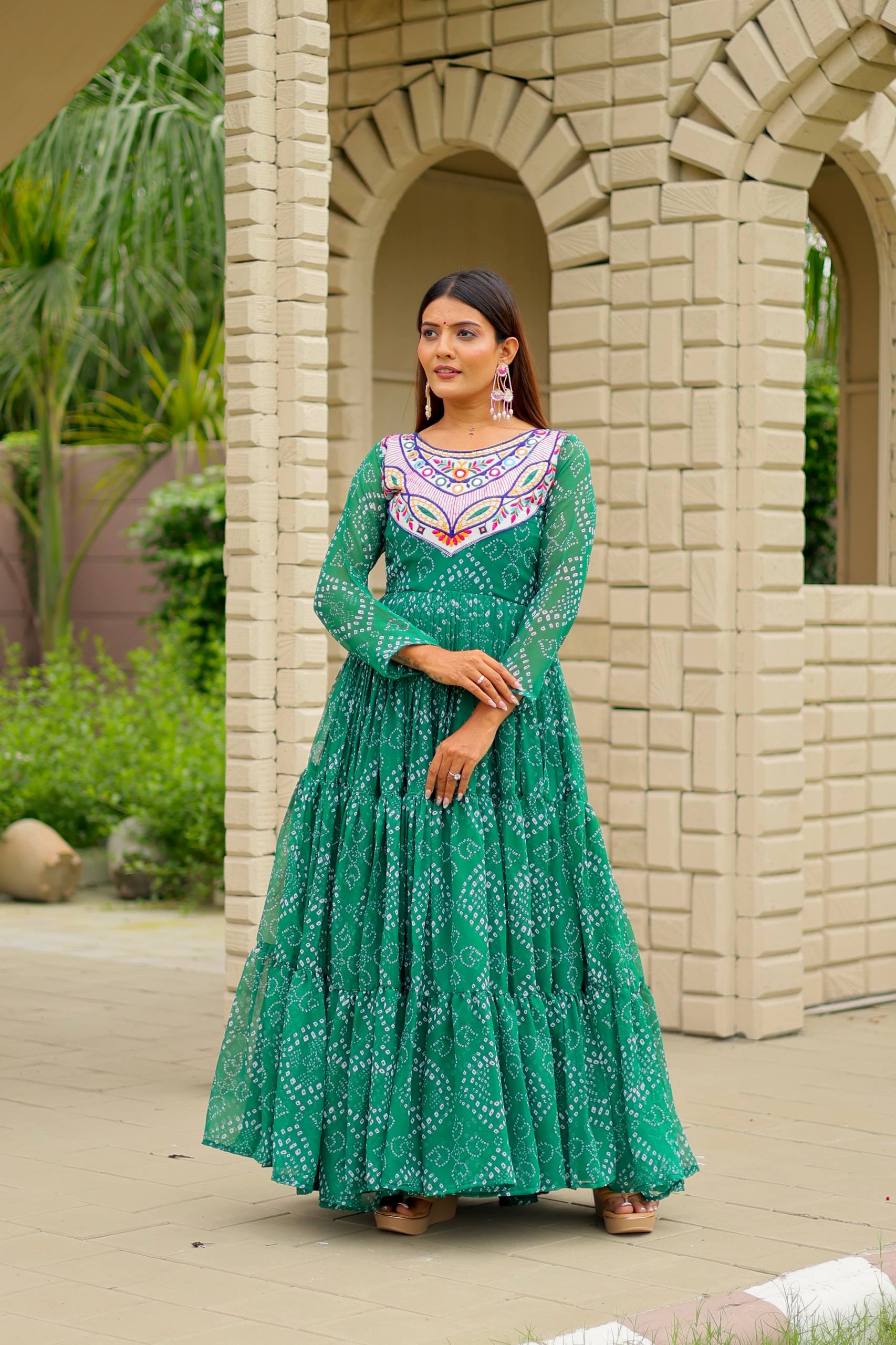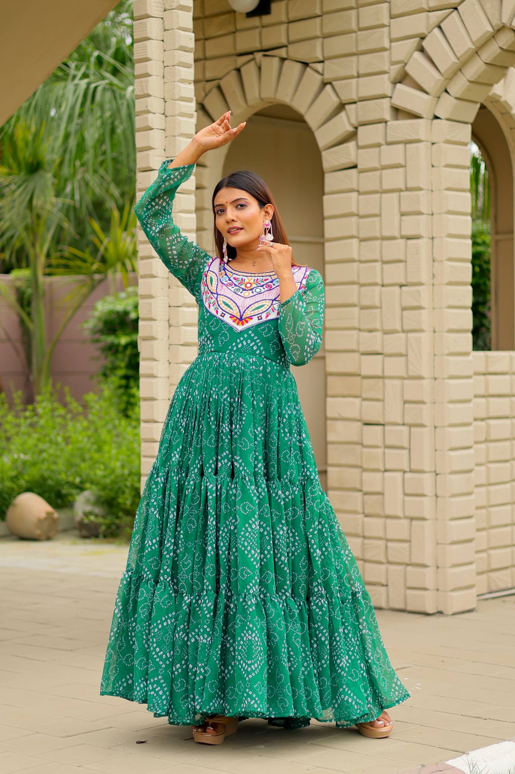 Pramukh Fab Green Color Faux Georgette Gown