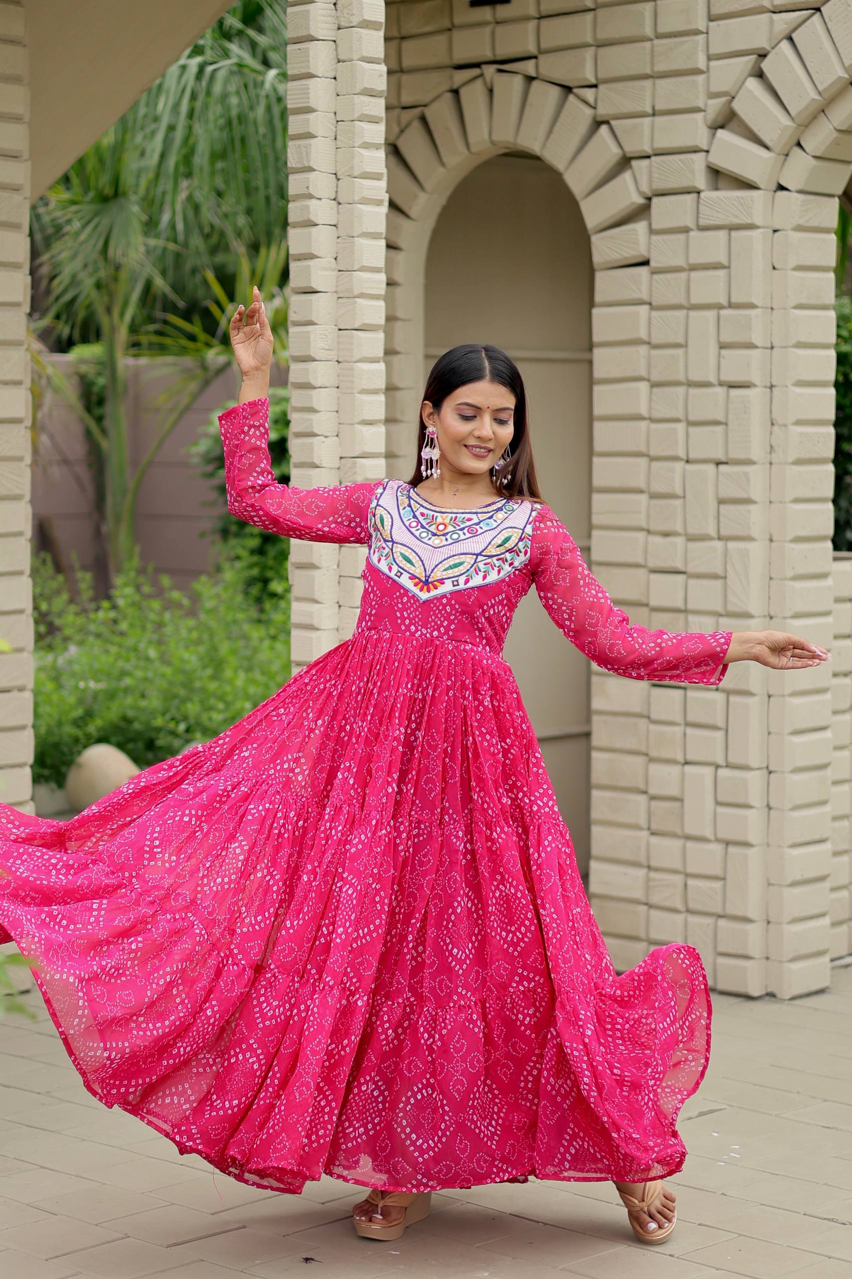 Pramukh Fab Pink Color Faux Georgette Gown