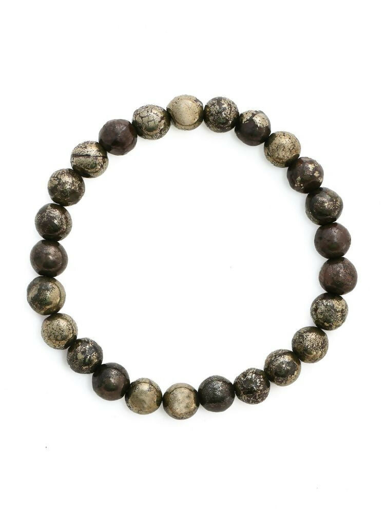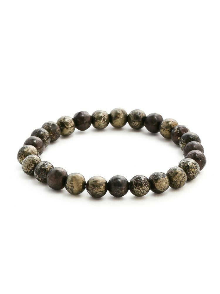 Pyrite Metal Black Round Elastic Bracelet - Ruby Raang