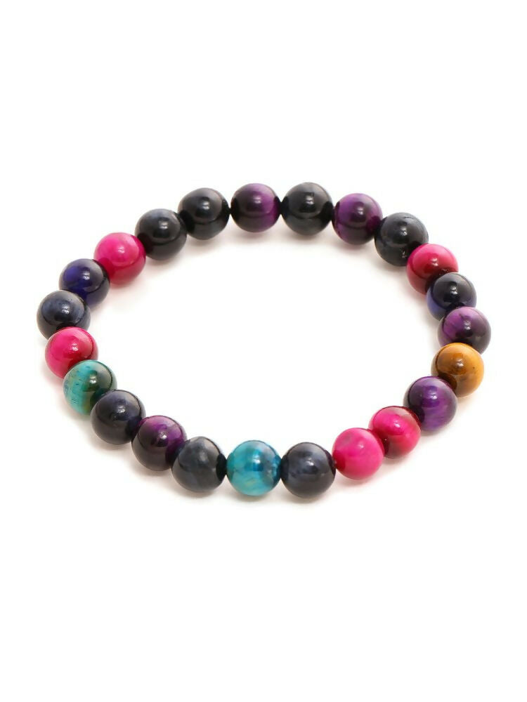 Red Carnelian, Lapis Lazuli, Amethyst and Green Avanturine Multicoloured Black Toned crystal bracelet - Ruby Raang