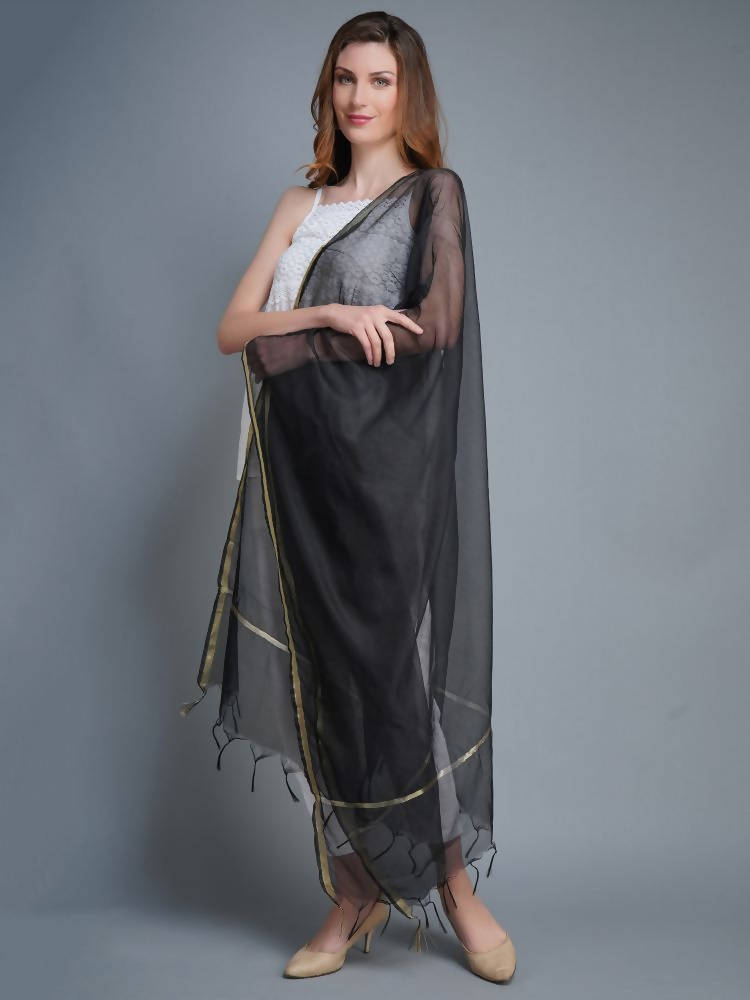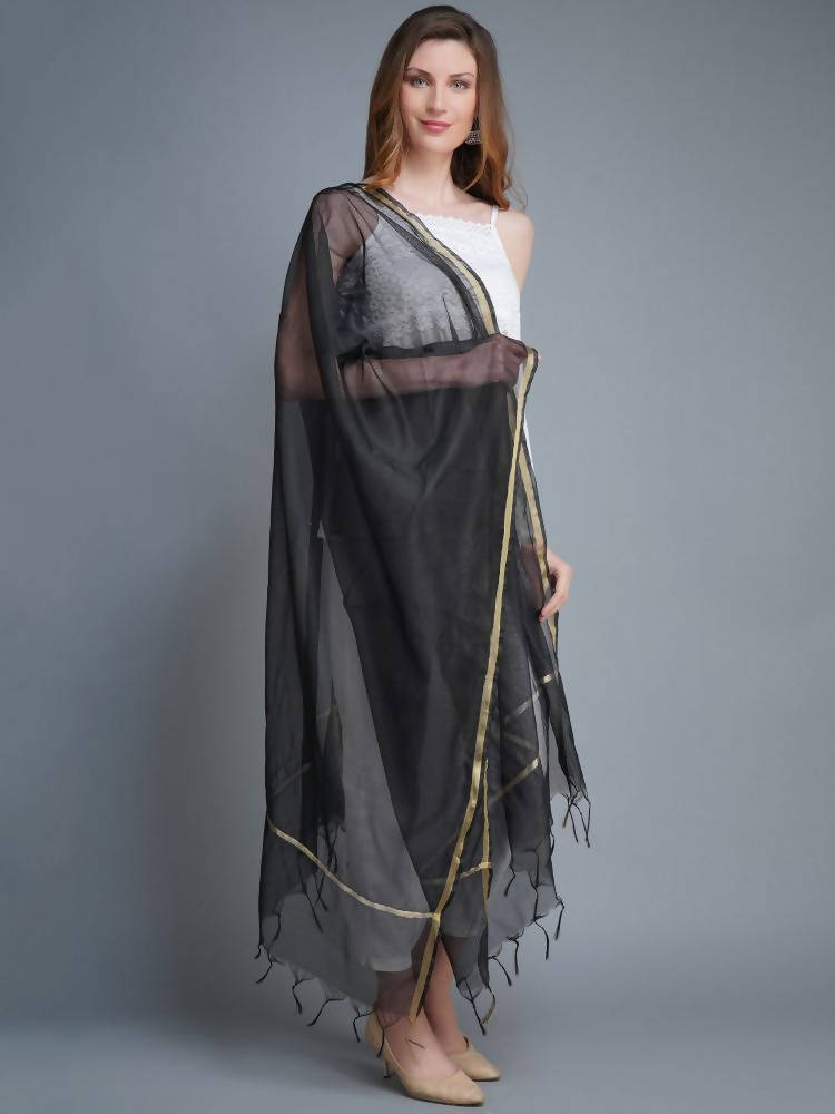 Shehnaai Chanderi Silk Dupatta In Black Colour With A Golden Woven Border
