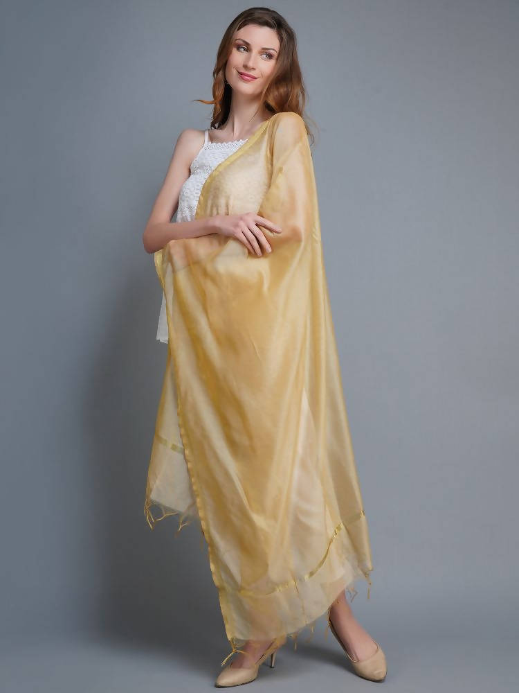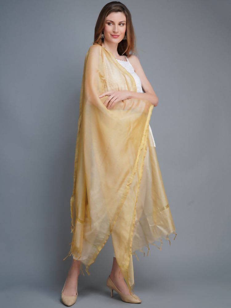 Shehnaai Chanderi Silk Dupatta In Golden Colour With A Golden Woven Border