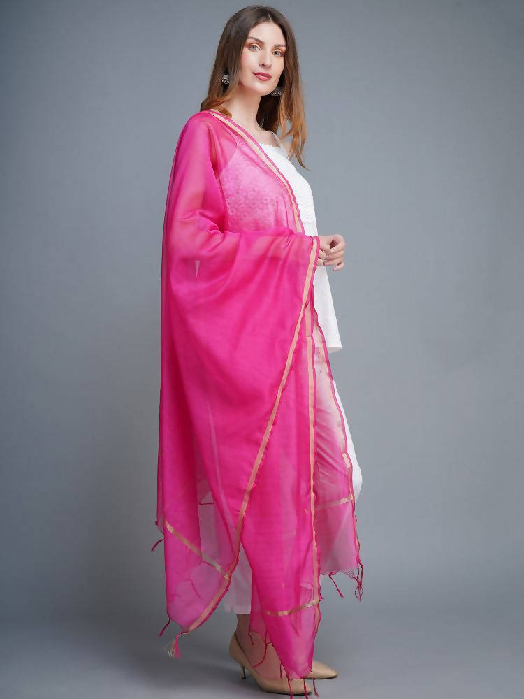 Shehnaai Chanderi Silk Dupatta In Magenta Colour With A Golden Woven Border