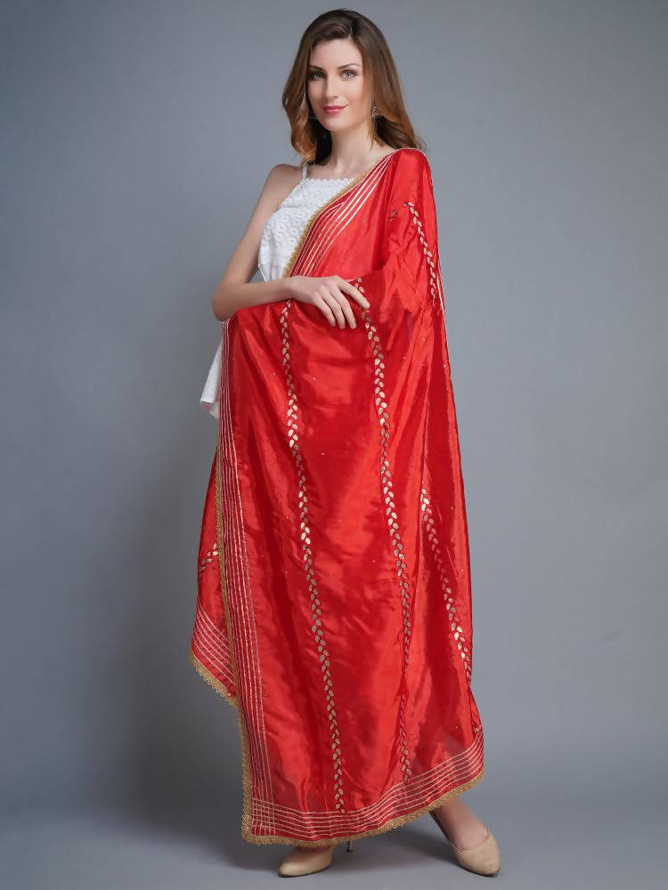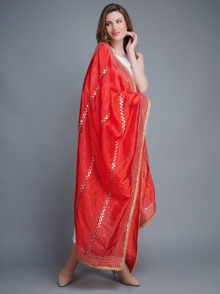 Shehnaai Red Artsilk Dupatta With Sarwoski And Gota Aari Embroidery