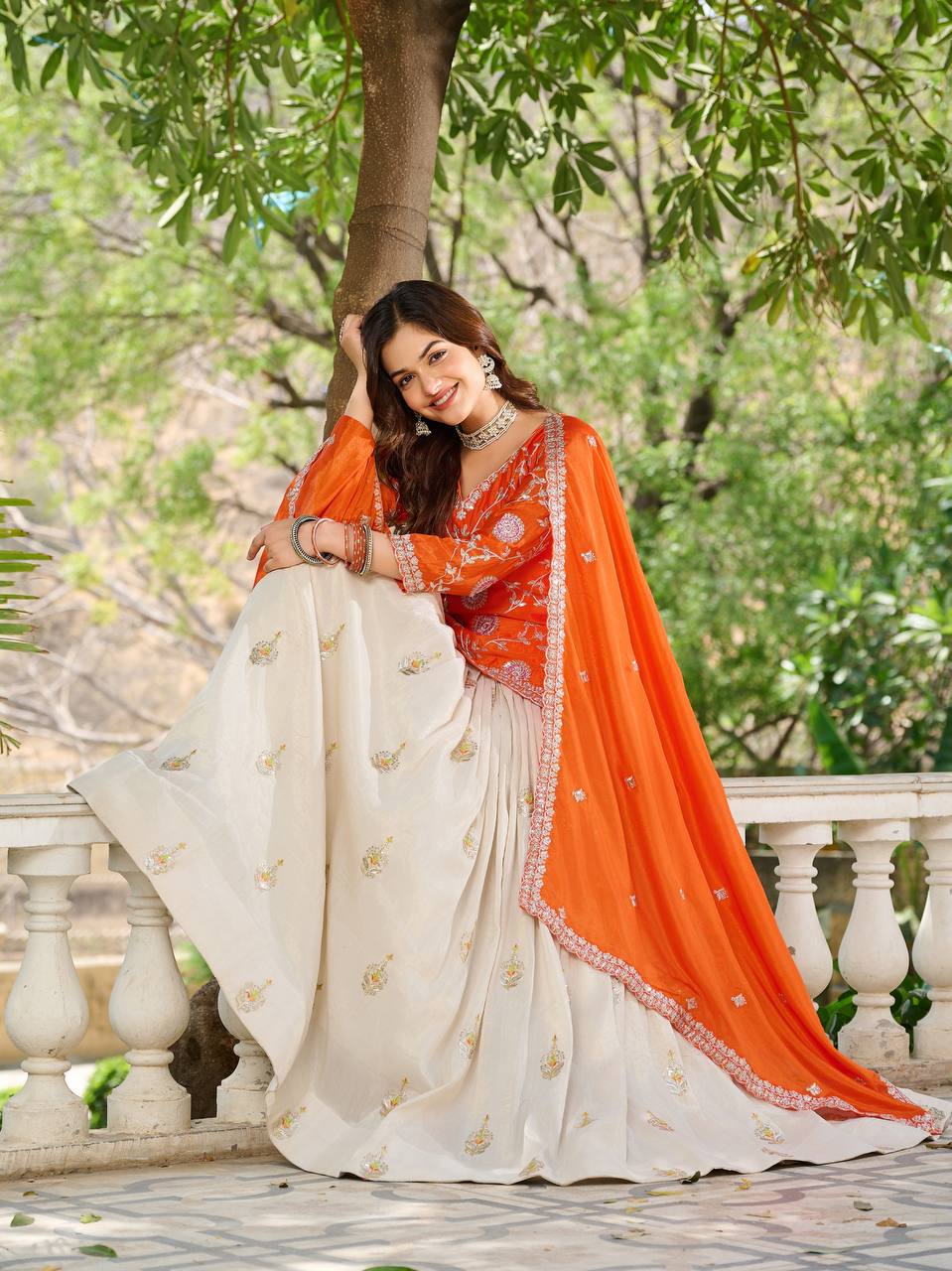 Sonakshi Women's Fenta Chinon Thread Embroidered Cording Sequence Lehenga Set With Dupatta