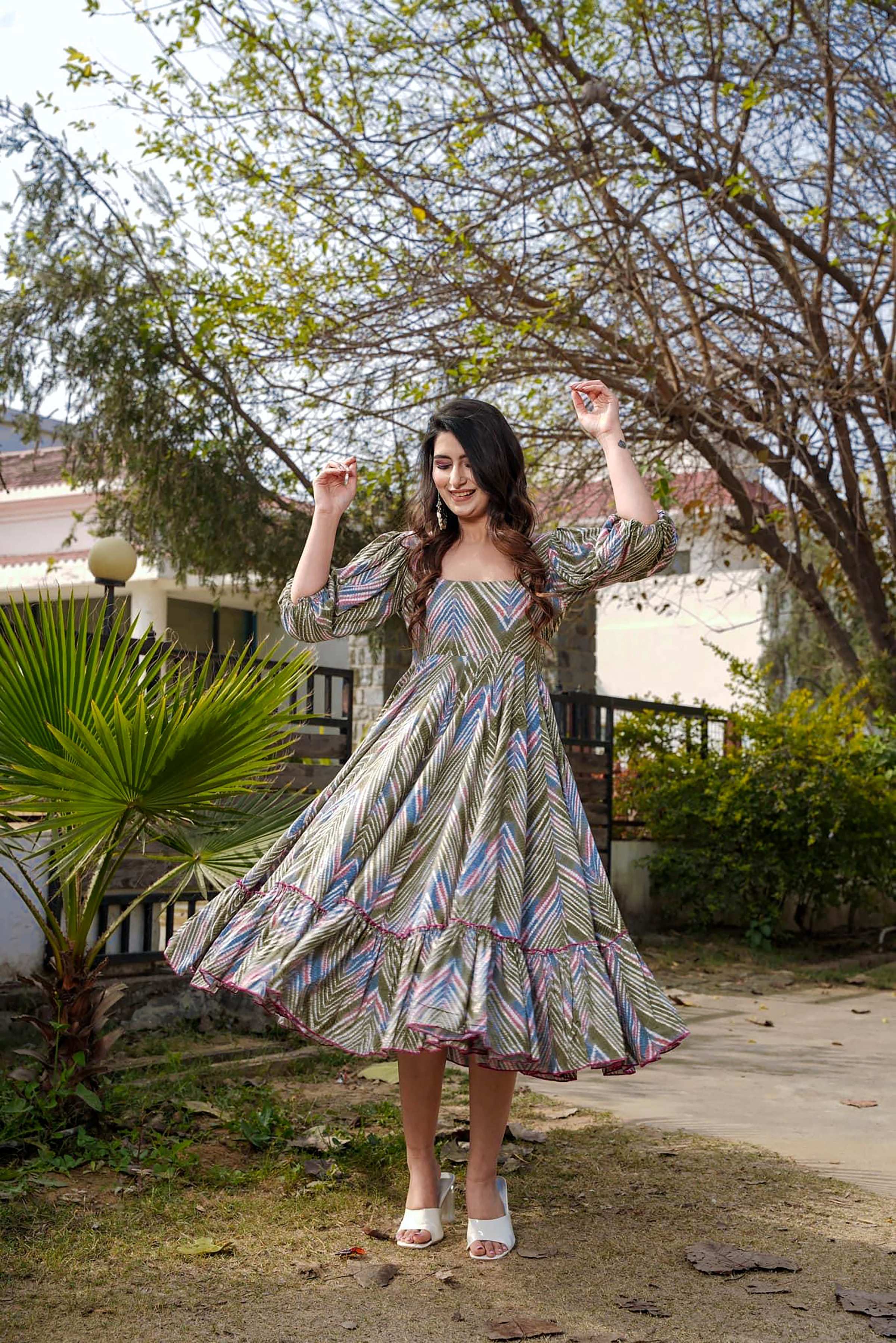 Sonakshi Women's Multycolor Rayon Digital Print Full Round Flair Anarkali Gown Set