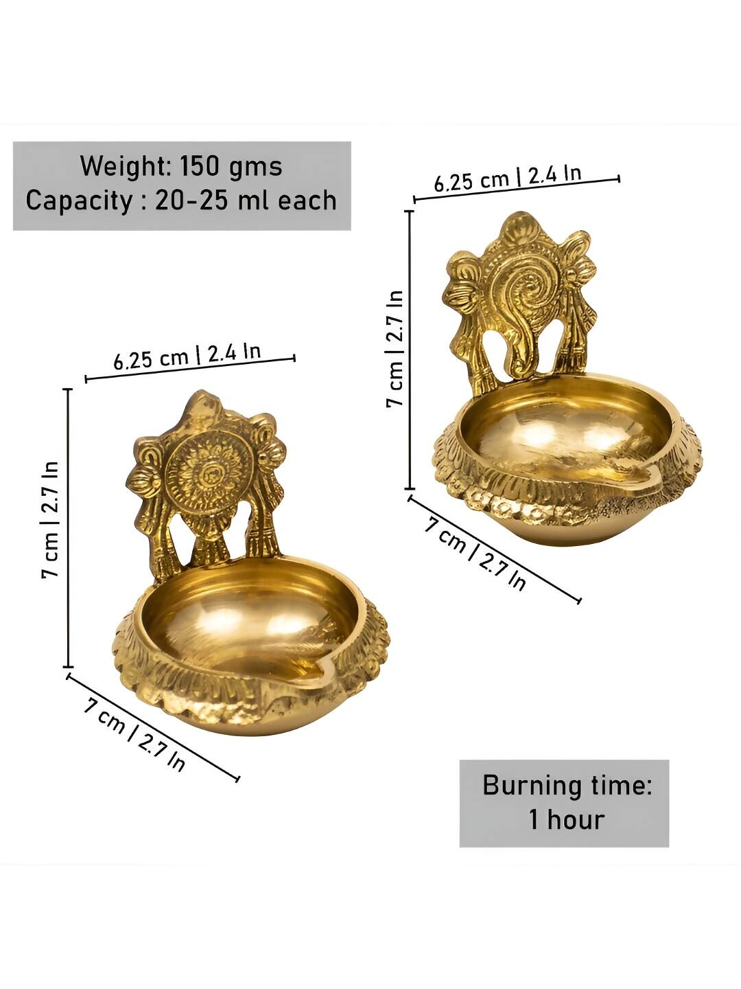Spillbox Gold-Toned Brass 2 Pieces Shangu Chakra Kuber Diya Pooja Essentials
