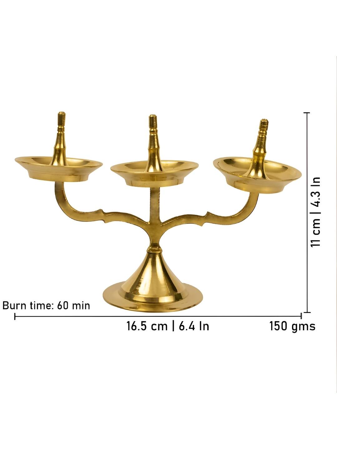 Spillbox Gold Toned Triple Lamp Diya Pooja Essentials