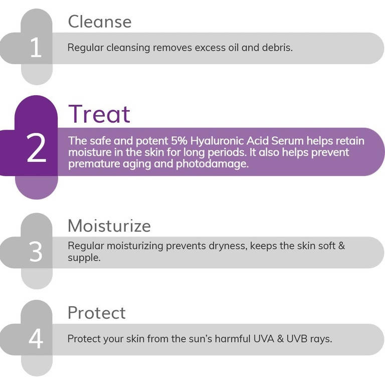 Retains Moisture and Hydrates – Hyaluronic Acid holds 1000x its weight in water! Yes, one thousand times. With regular use, Hyaluronic Acid creates a barrier for the skin and locks in moisture. It also improves texture and stops the loss of moisture and water from the skin. Our 5% Hyaluronic Acid Serum also strengthens the skin’s barrier and builds immunity against free radical damage. So, yay for science, and you as flawless skin is not a myth. In fact, it comes carefully formulated with superior ingredients in this 30ml bottle of India’s 1st 5% Hyaluronic Acid Serum!