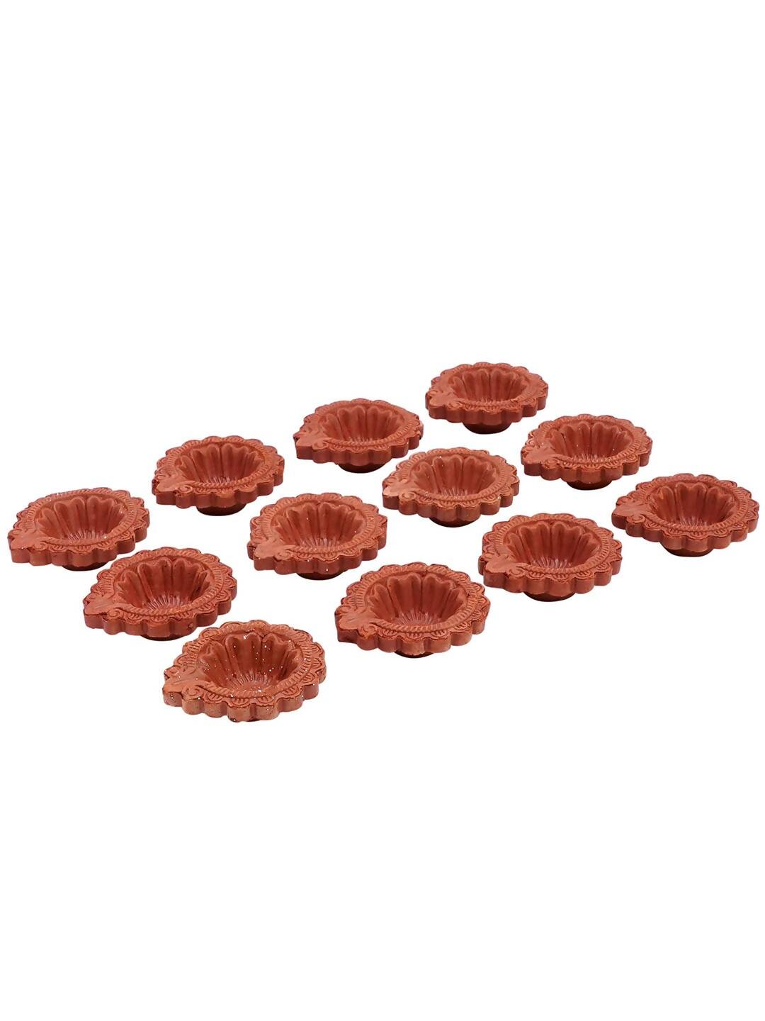 Tied Ribbons Brown Set of 12 Handmade Clay Terracotta Diyas