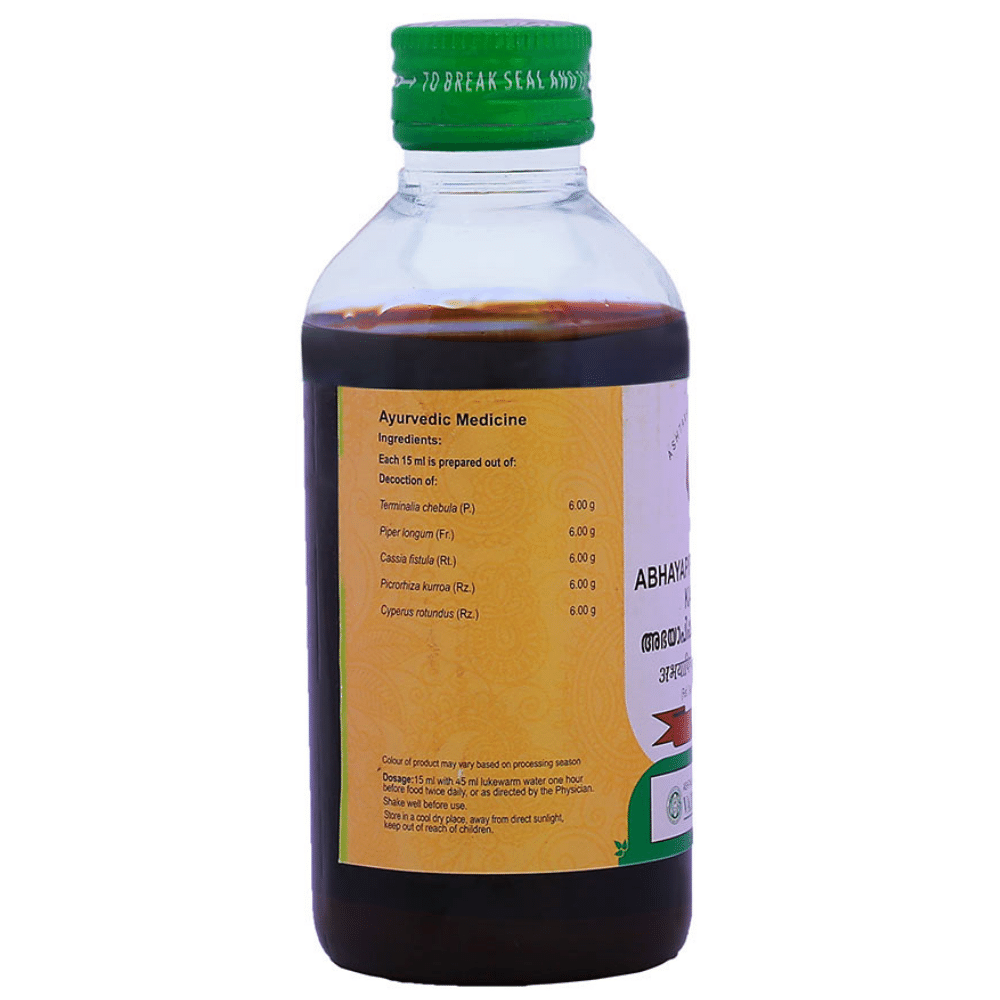 DoseVaidyaratnam Abhayapippaleemooladi Kashayam should be consumed after consulting a physician. Generally, the below steps are followed to have the supplement.