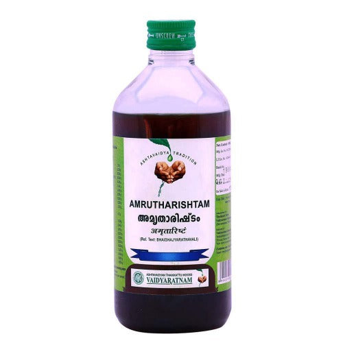 Vaidyaratnam Amrutharishtam is a classical Ayurvedic preparation made using a traditional herbal fermentation process. It is generally used as part of a wellness regimen and should be consumed under the guidance of a qualified practitioner.