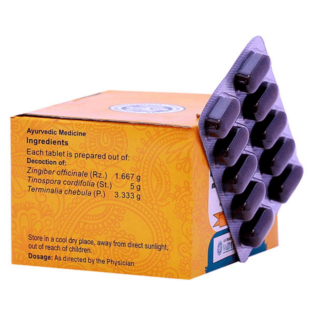 Vaidyaratnam Oushadhasala was founded in 1941. This Ayurvedic institute follows Kerala Ayurveda and Ashtavaidya Tradition to prepare the supplement. Vaidyaratnam Amruthotharam Kashaya Gulika