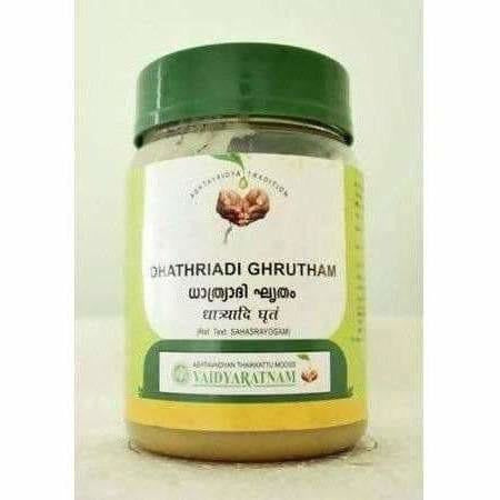 Vaidyaratnam Dhathryadi Ghrutham is an Ayurvedic formulation. This herbal ghee is traditionally used to calm pitta dosha.