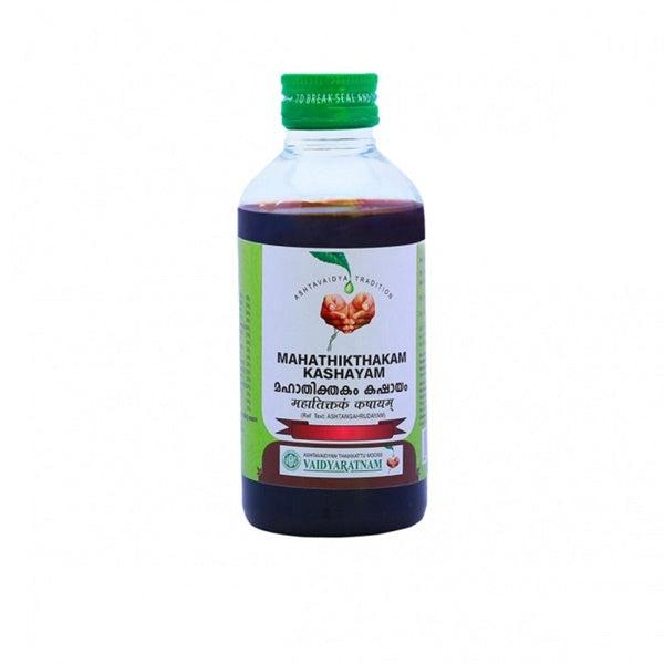 Vaidyaratnam Mahathikthakam Kashayam is an Ayurvedic tonic. This herbal decoction is traditionally used in India for skin related problems. It is also available in kashayam tablet form.