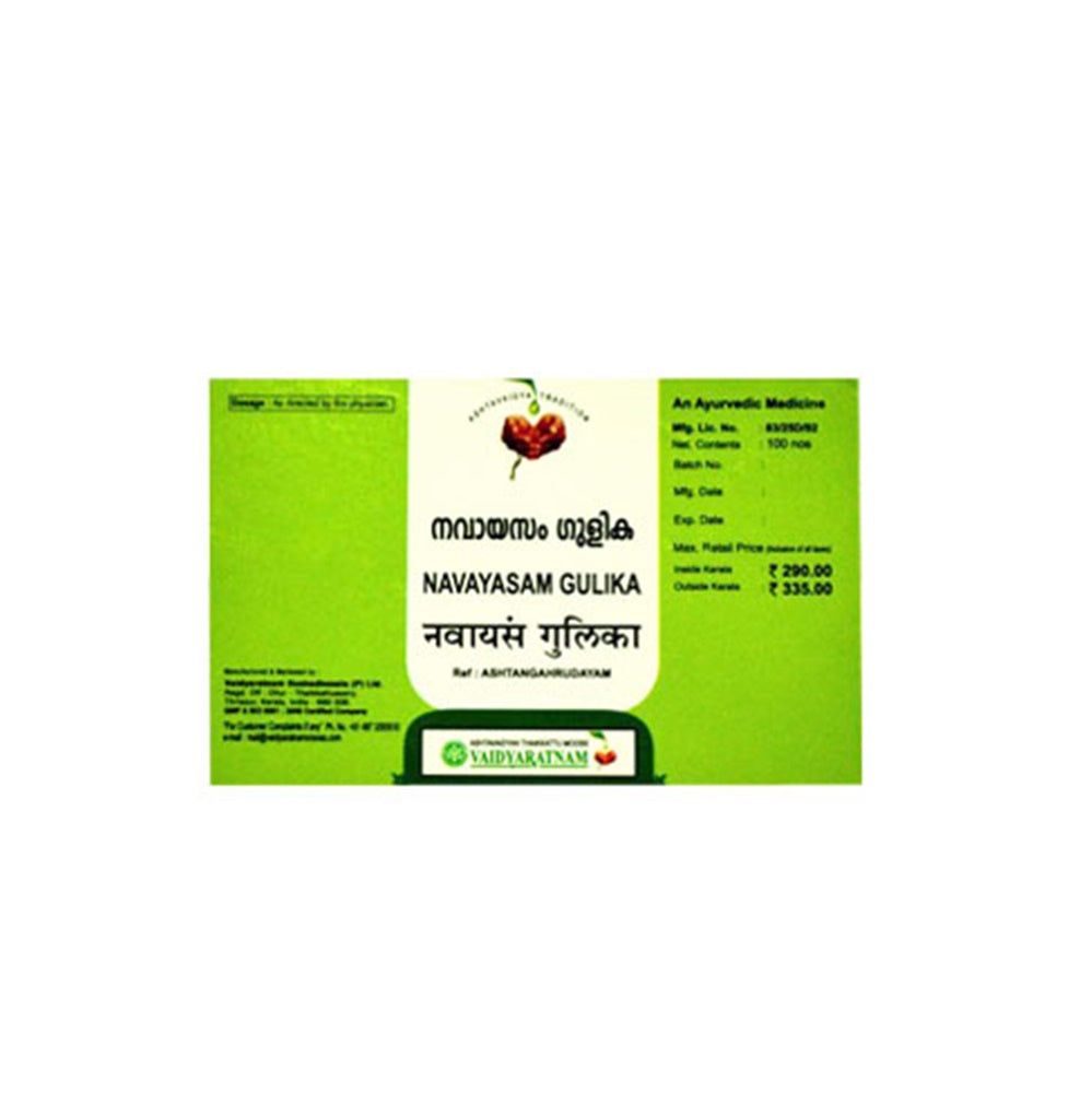 Vaidyaratnam Navayasam Gulika is enriched with herbal goodness. This all-natural supplement is made with