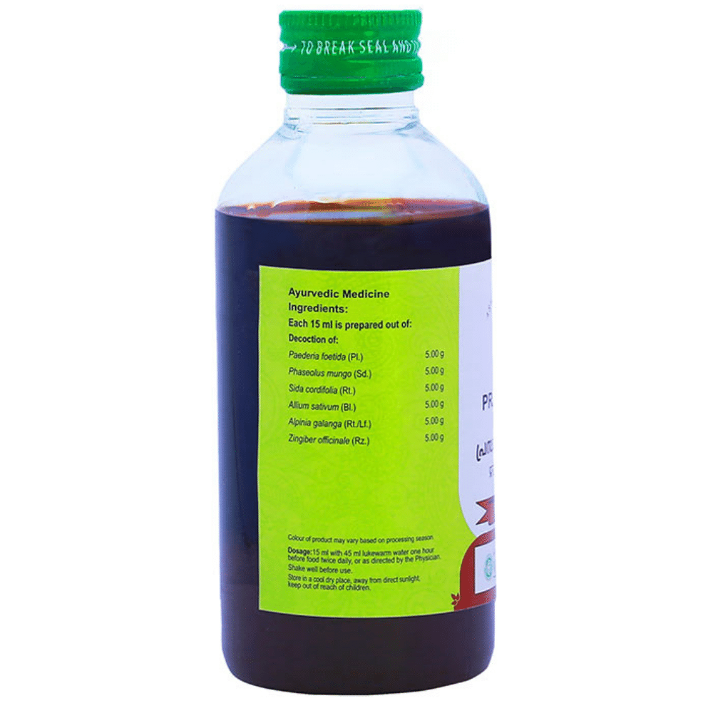 Vaidyaratnam Prasaranyadi Kashayam is an Ayurvedic formulation. This herbal decoction is traditionally used in rheumatic issues, especially in upper limbs. The supplement is also known as Prasarinyadi Kwatham.