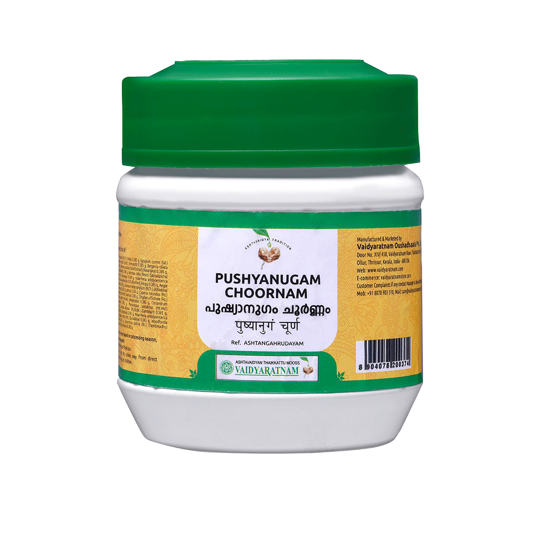 Vaidyaratnam Pushyanugam Choornam is enriched with herbal goodness. It is made with