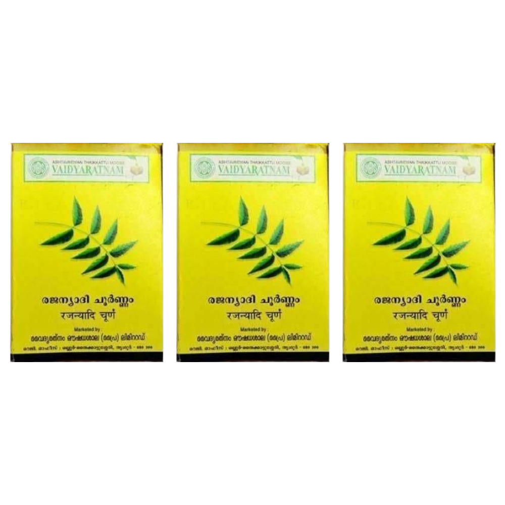 Vaidyaratnam Rajanyadi Choornam is enriched with herbal goodness. This herbal powder is made with
